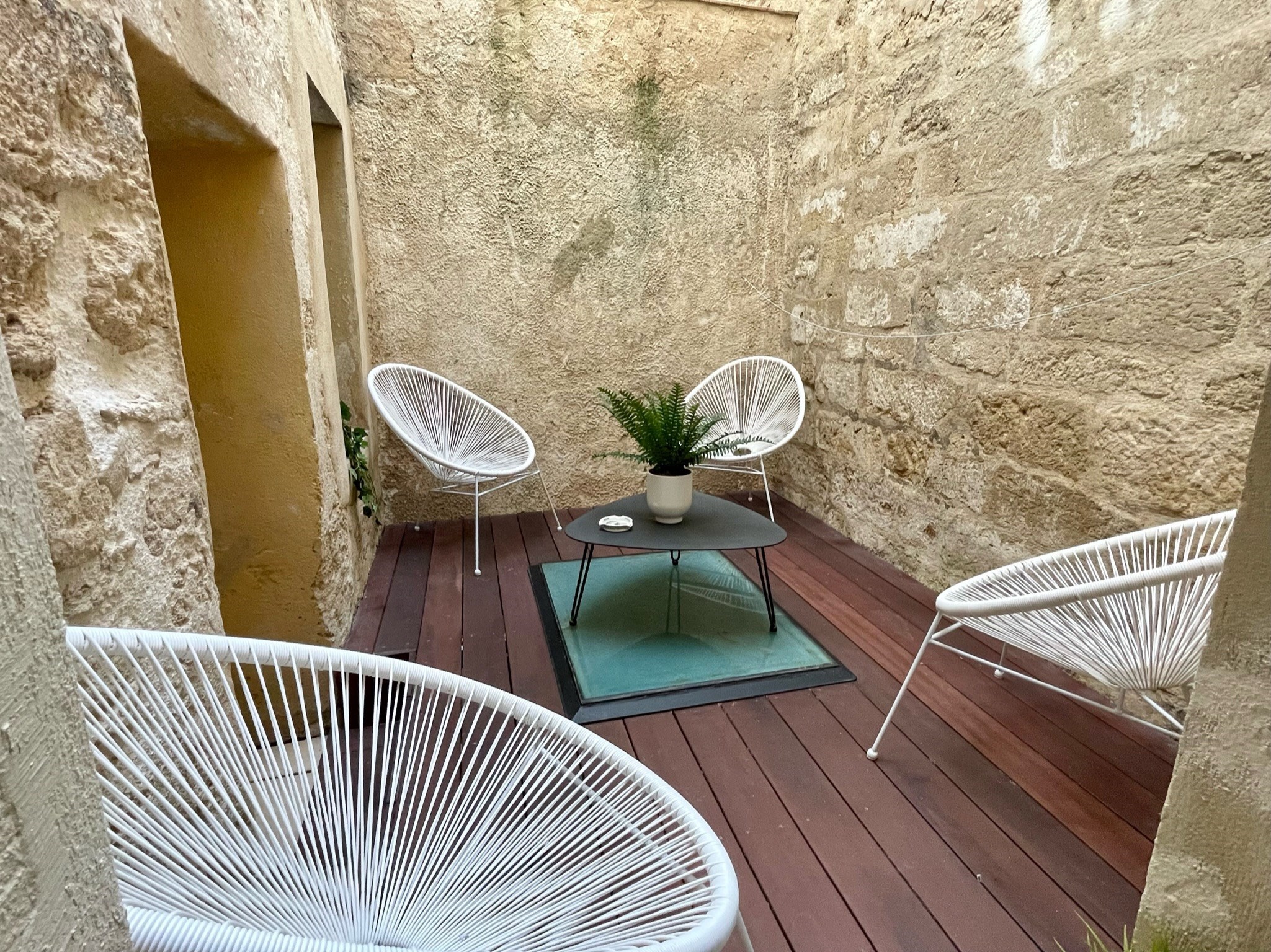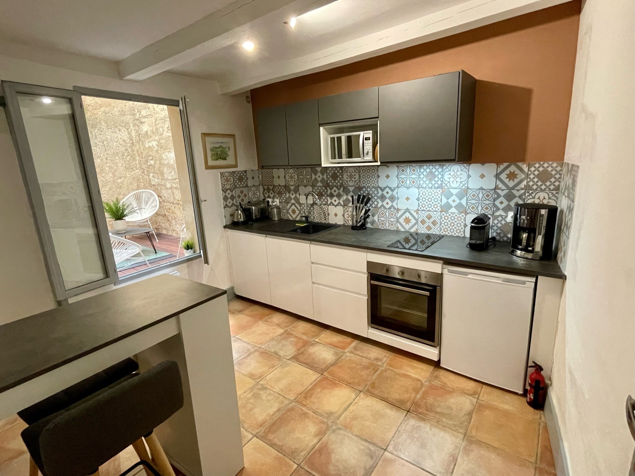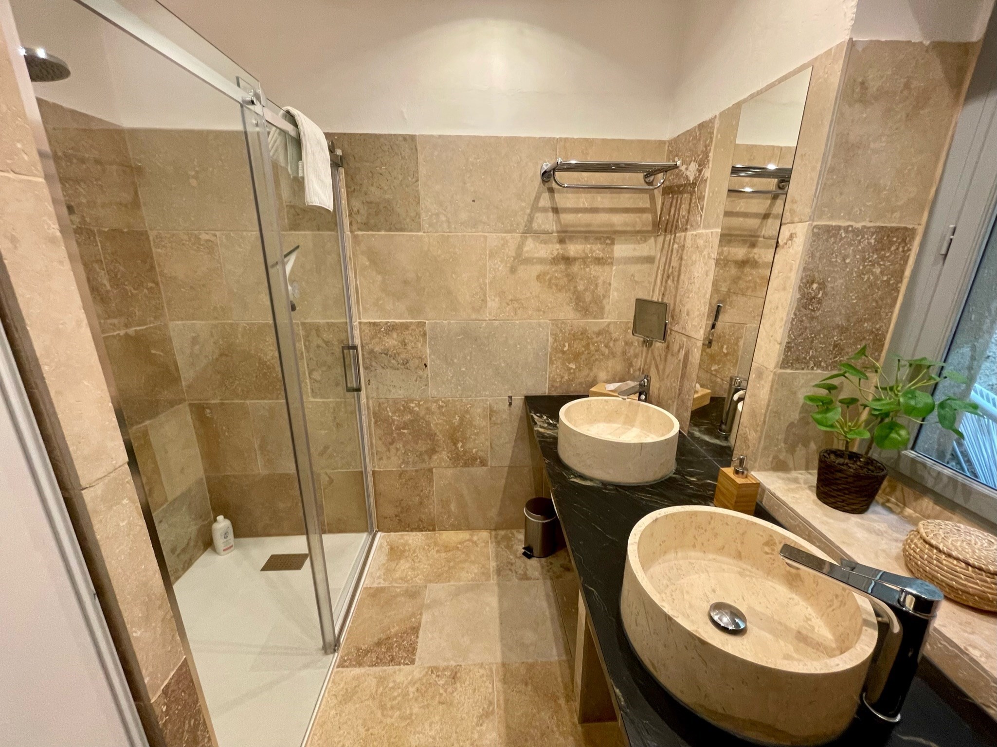 Pour votre détente, repos et bien être ,vous disposez d’une grande salle de douche, d’une cuisine équipée et d’un patio plein de charme dans un puits de lumière avec fauteuils et table basse.