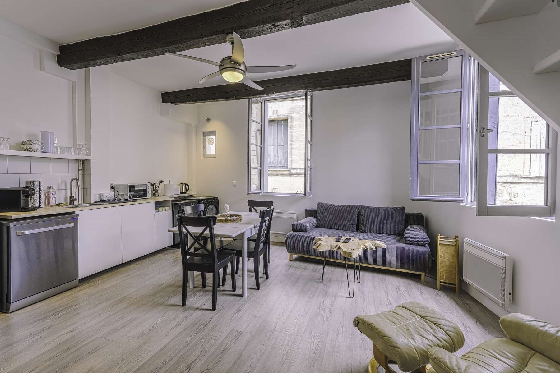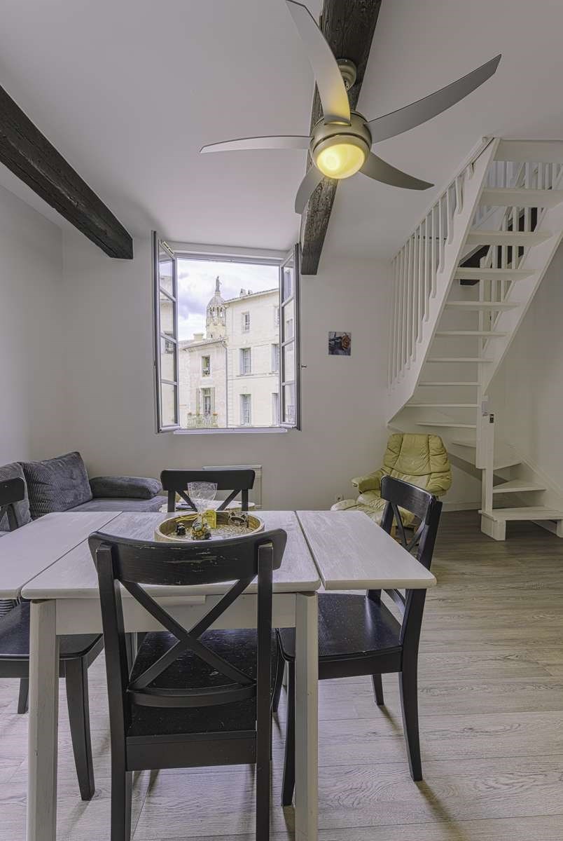 Élégant duplex lumineux niché au cœur historique d’Uzès. Séjour avec cuisine équipée, vaste chambre à l’étage avec salle d’eau et WC. Alliance parfaite du charme de l’ancien et du confort moderne pour un séjour d’exception.
