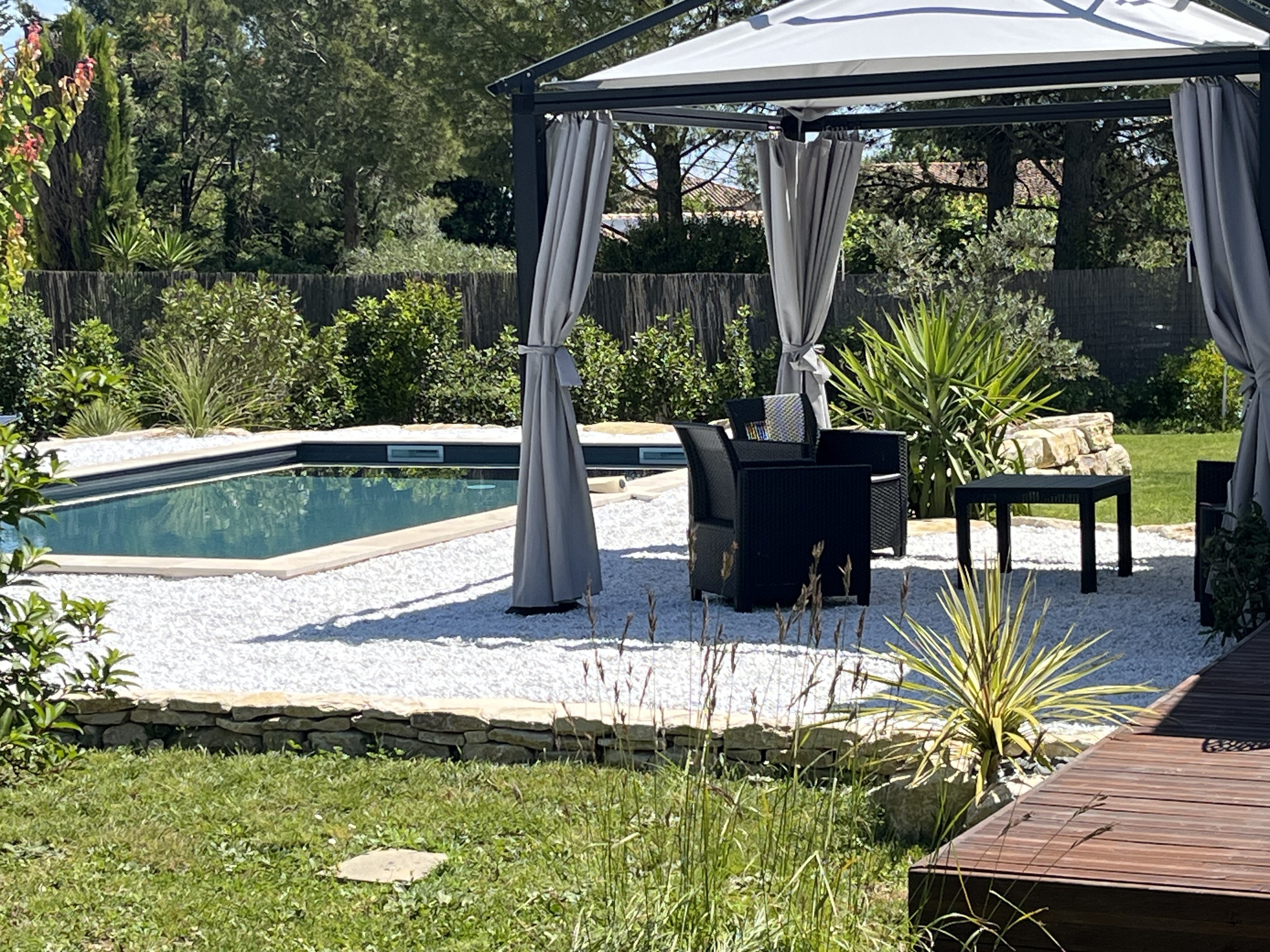 L’ensemble de la propriété est exclusivement réservé aux vacanciers. La maison est située à quelques mètres du centre du village où l’on peut trouver bureau de tabac, presse, épicerie, restaurant, bornes électriques, city stade et jeux pour enfants.