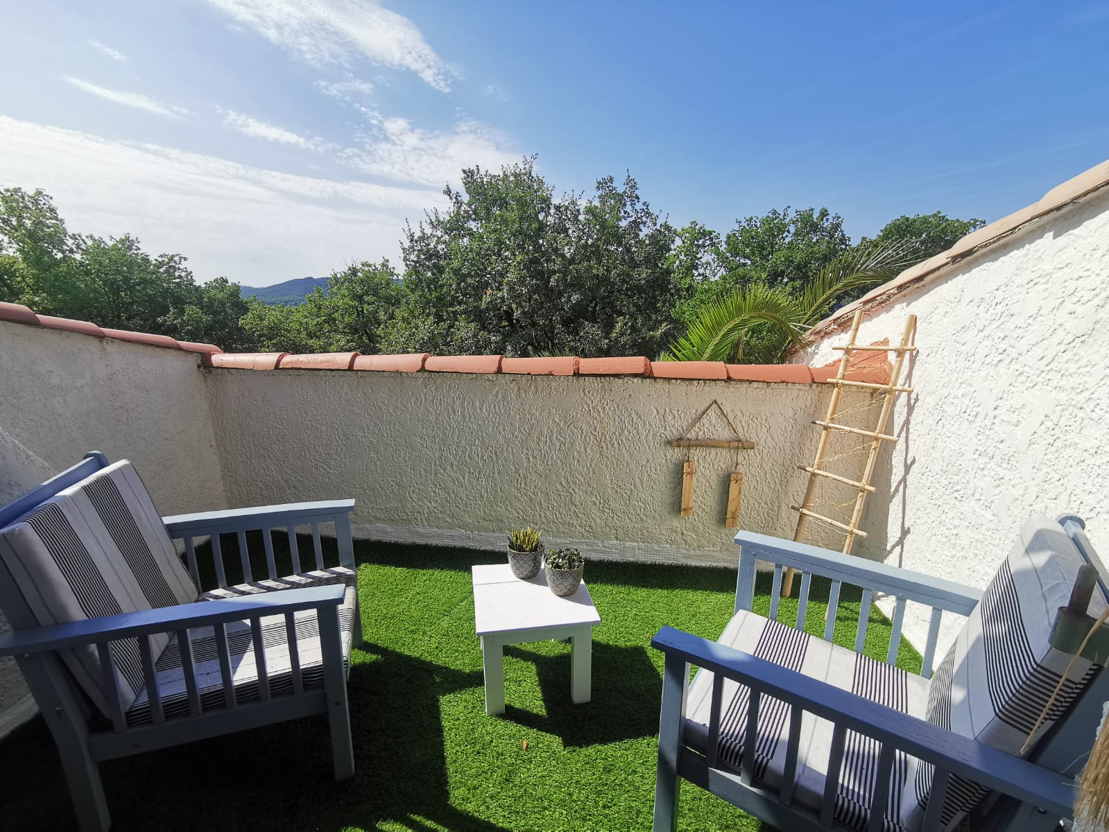 Au même étage un petit salon vous est également réservé. De votre chambre une petite terrasse sans vis à vis avec une jolie vue.