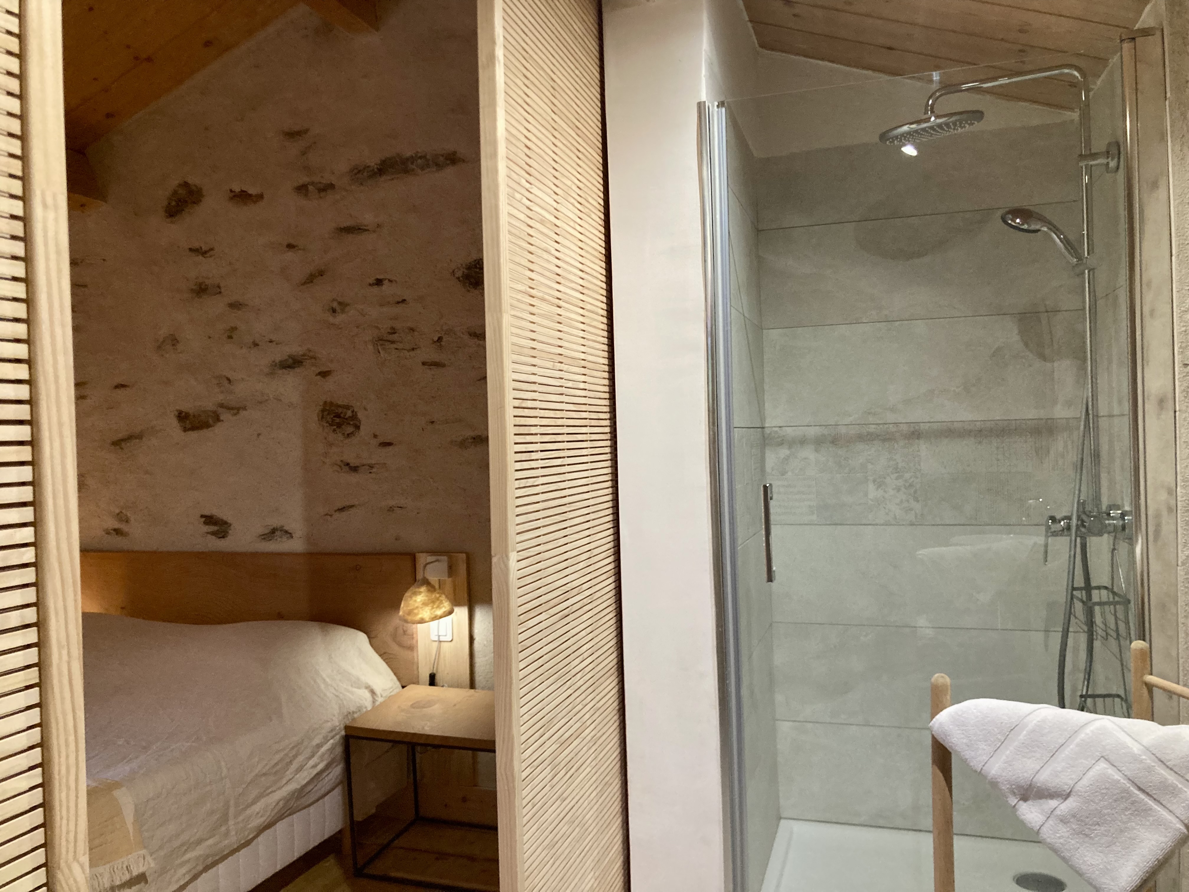 Le gîte accueil 2 personnes. Ce gîte est ouvert toute l’année. Il est composé d’une chambre spacieuse à l’étage, avec salle de bain attenante et WC, d’une pièce à vivre donnant sur une cuisine ouverte, d’un WC au rez-de-chaussée, d’une terrasse avec salon de jardin et plancha.