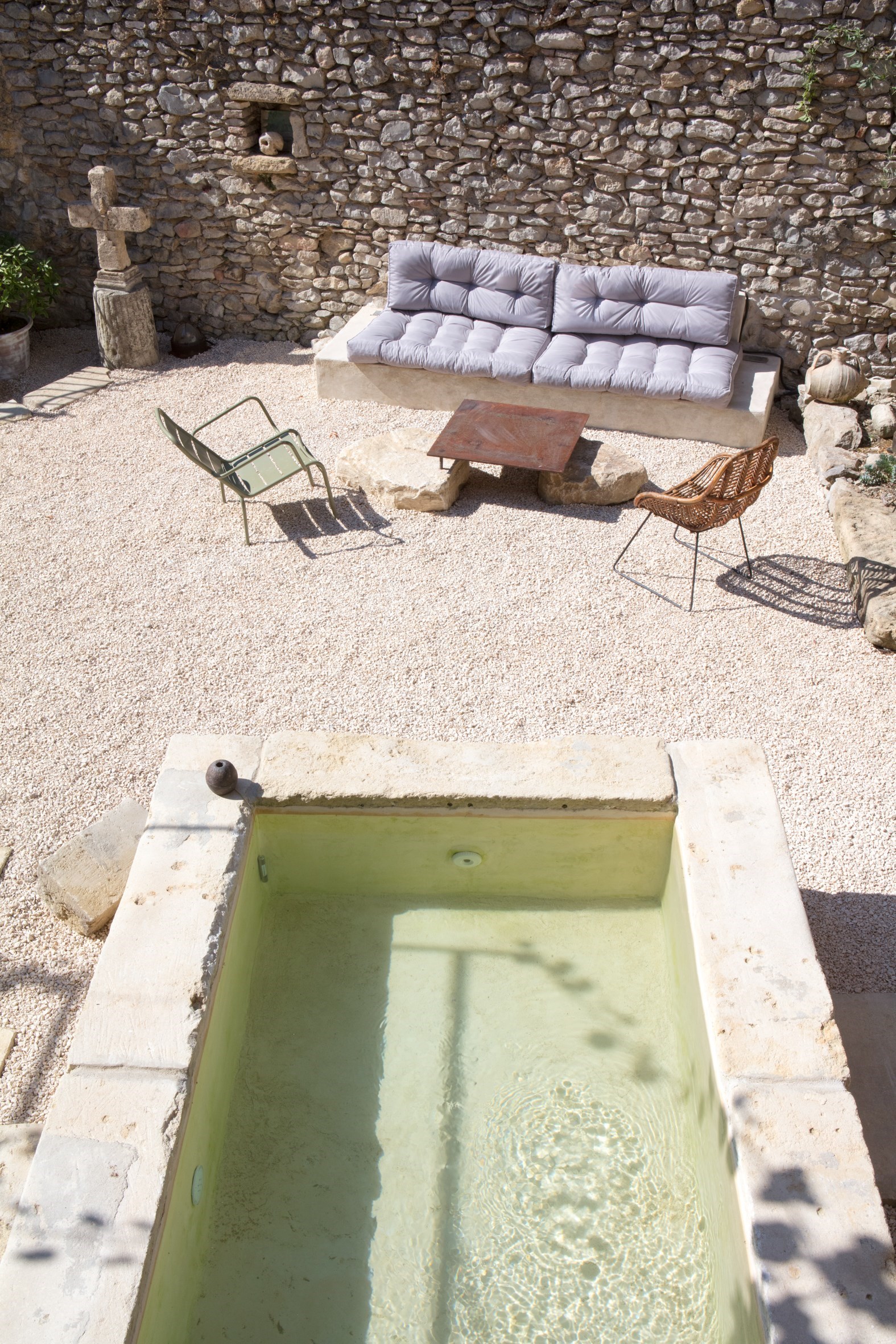 Superbe appartement dans un mas provençal datant du XVIIIe siècle, à deux pas d’Uzès.L’accès au mas se fait par une très belle cour, agrémentée d’un superbe bassin/piscine en pierres, d’un espace détente avec canapé, de tables pour les repas.