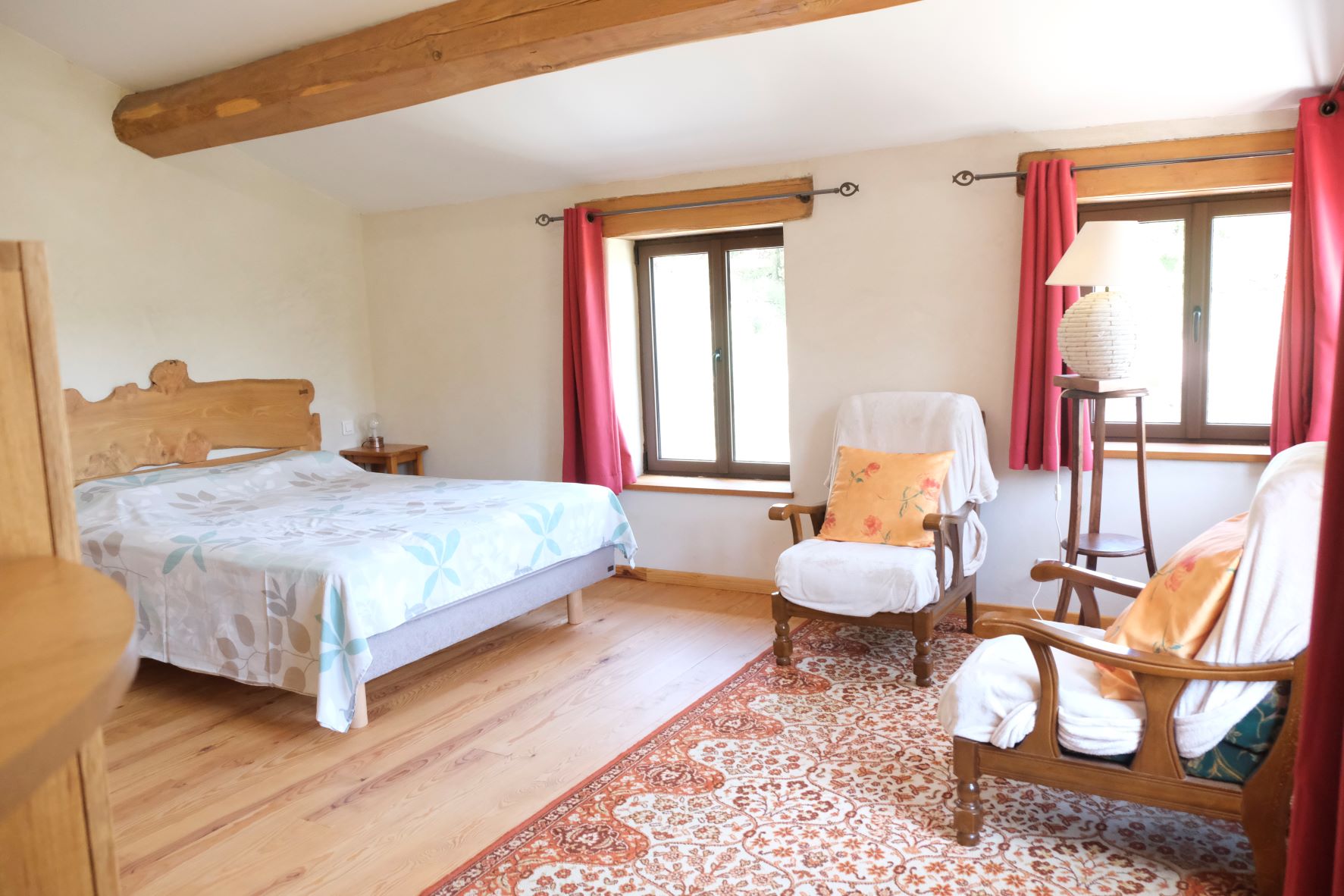 Environnement de hameau. Gîte indépendant avec au rez-de-chaussée séjour-cuisine, et à l’étage, 1 chambre (1 lit en 160 + 1 lit en 90), 1 salle d’eau et 1 wc indépendant.