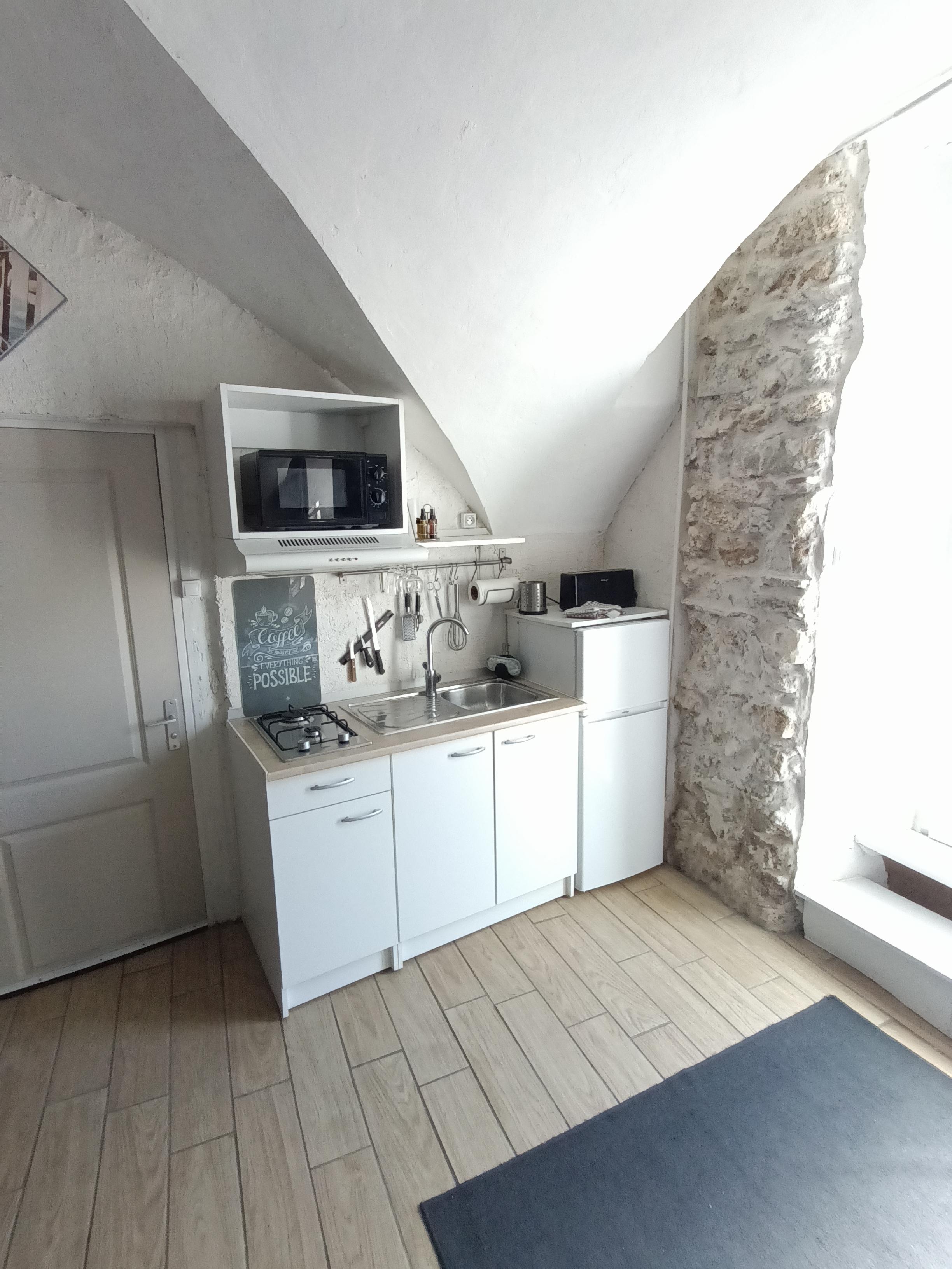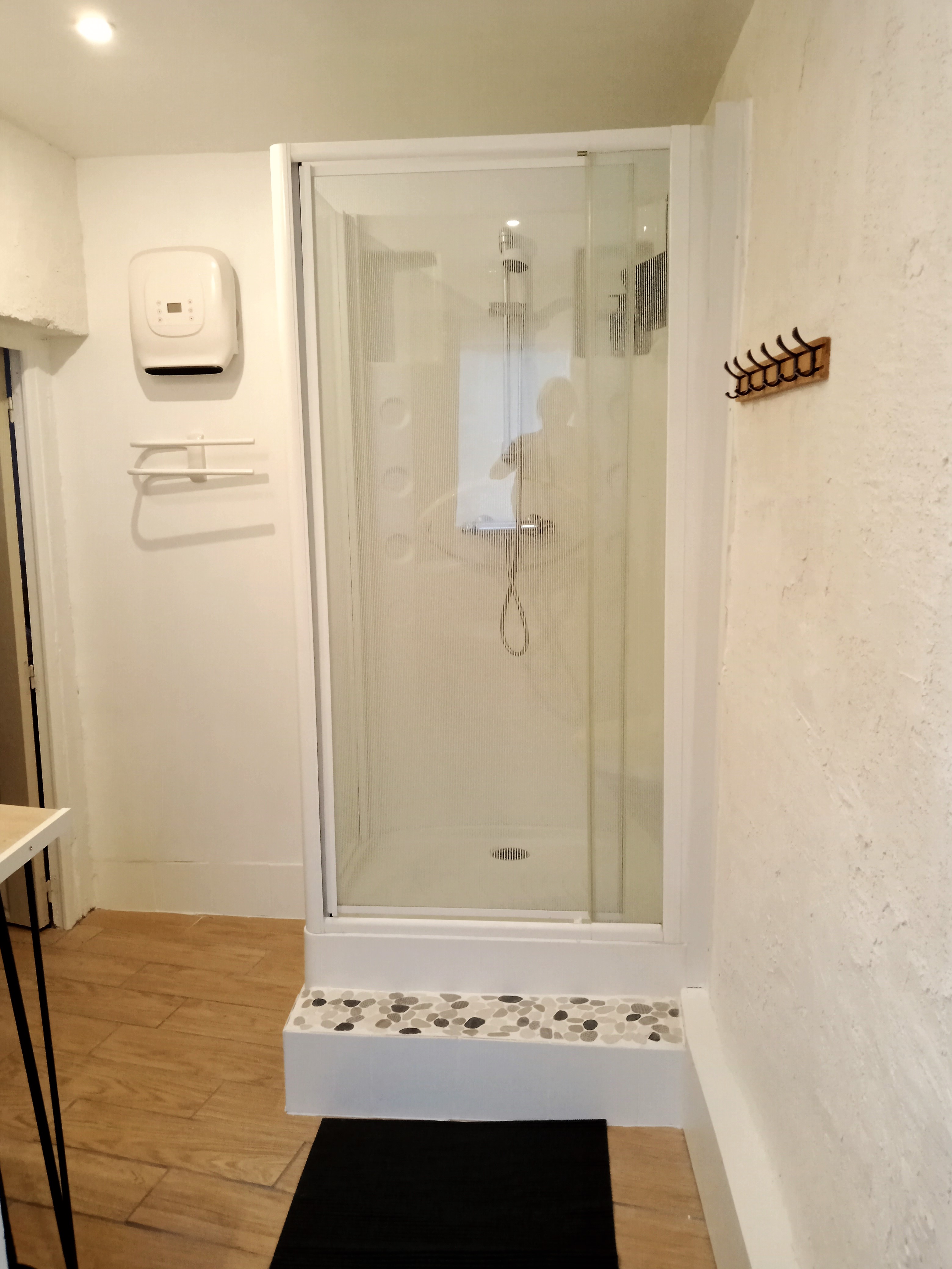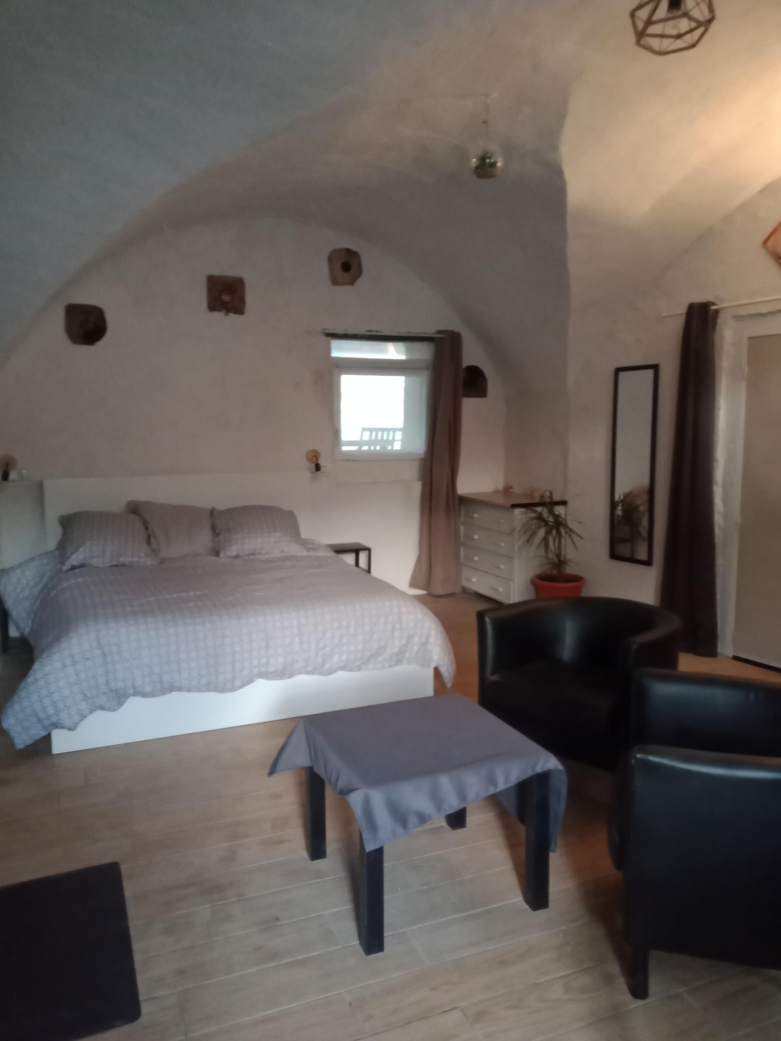 L’appartement se situe au rez de chaussee de la maison. C’est une grande piece de 30 m², avec coin salon et cuisine equipée et avec un lit king size en 160 X 200. la salle d’eau comprend une douche, un lavabo et wc. Il y a des rangements dans chaque piece.