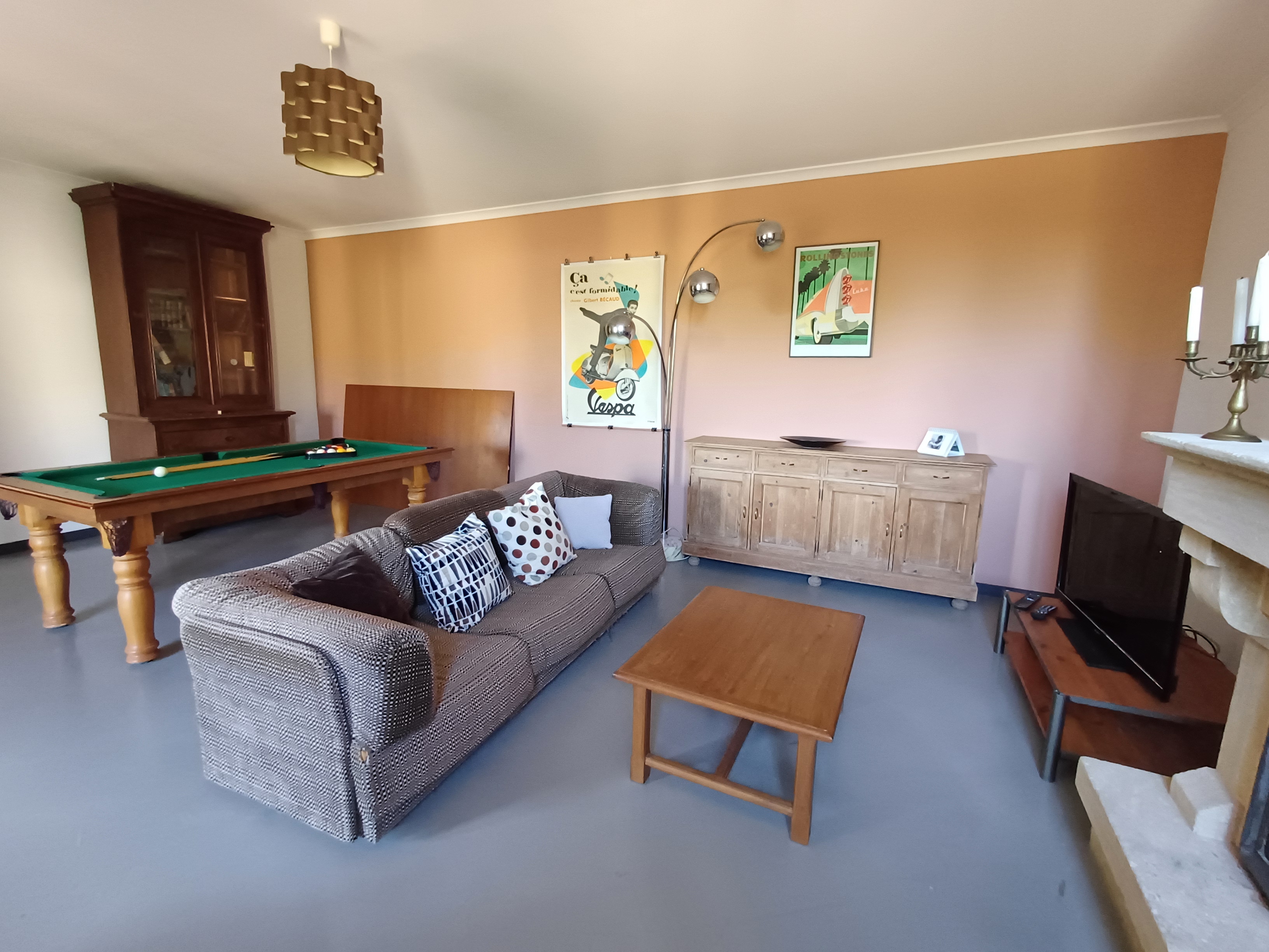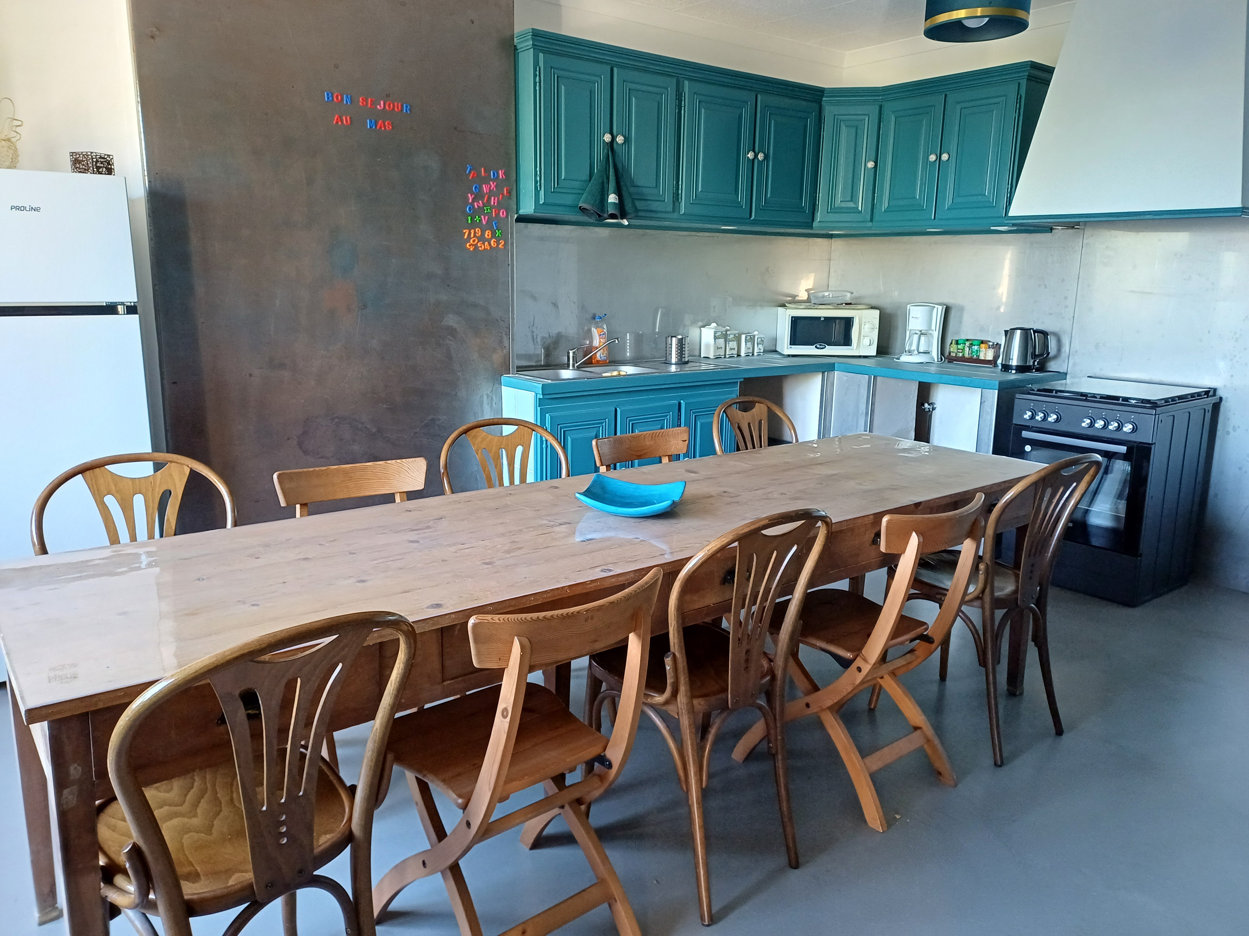 L’hébergement se compose d’une grande cuisine avec salle à manger entièrement équipée, d’un salon convivial avec billard, de deux chambres confortables (une avec un lit double 140 cm, l’autre avec un lit double 140 cm et un lit simple 90 cm), ainsi que d’une salle de bain avec baignoire et de toilettes séparées. Les draps et les serviettes de bains sont fournis pour votre confort.