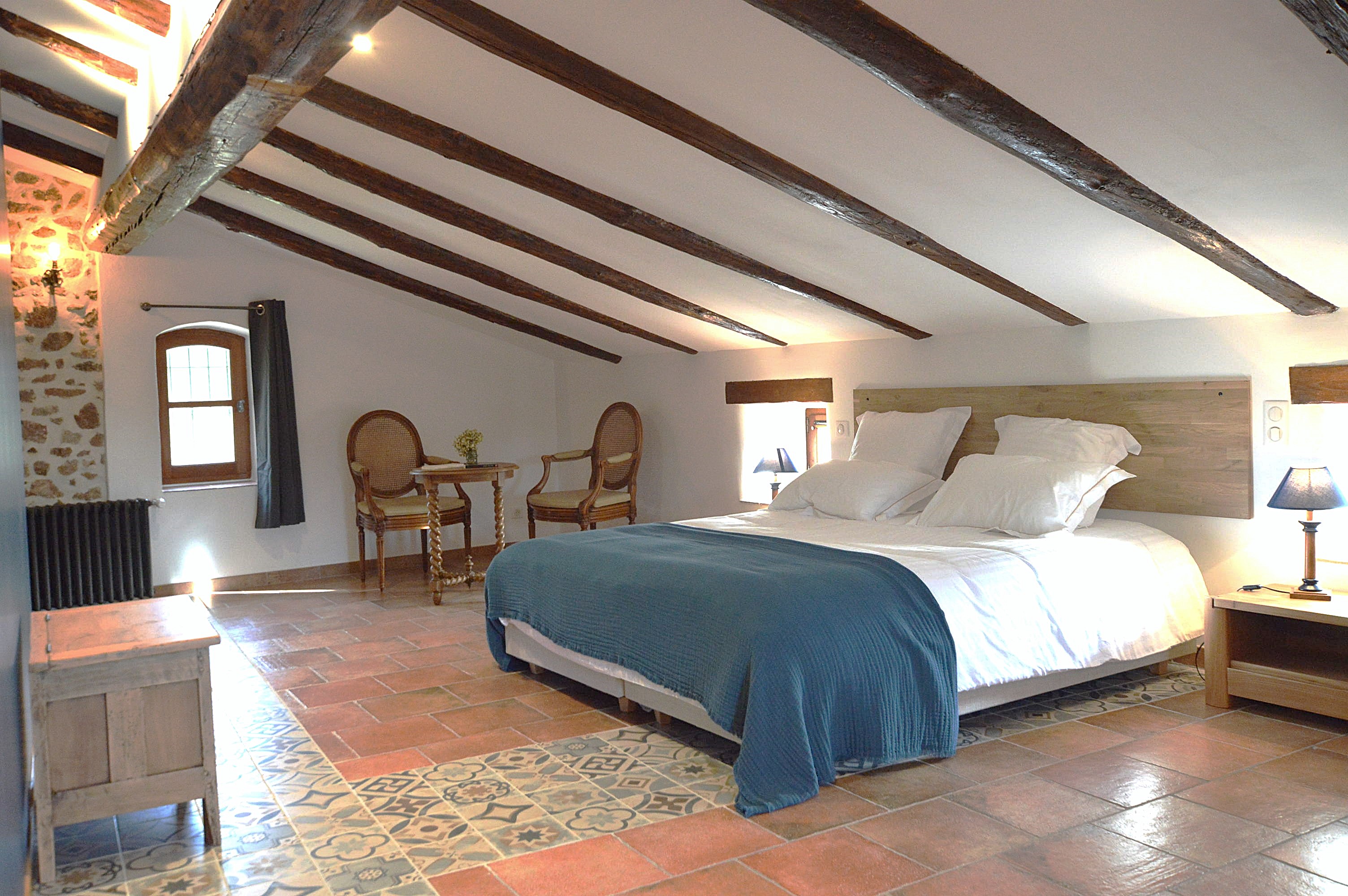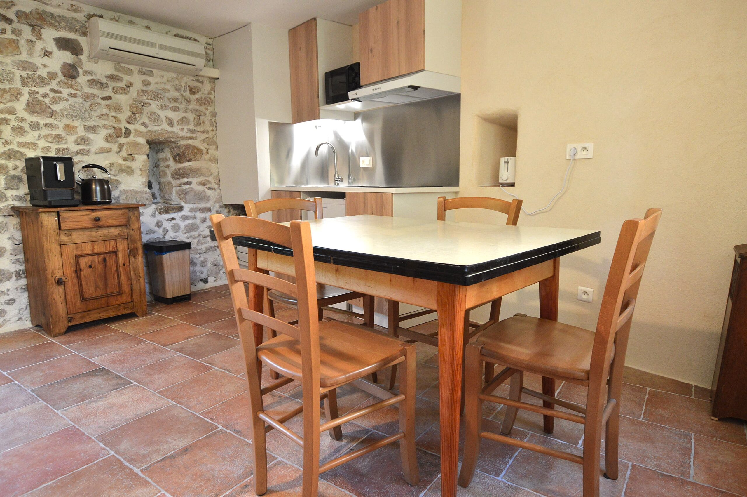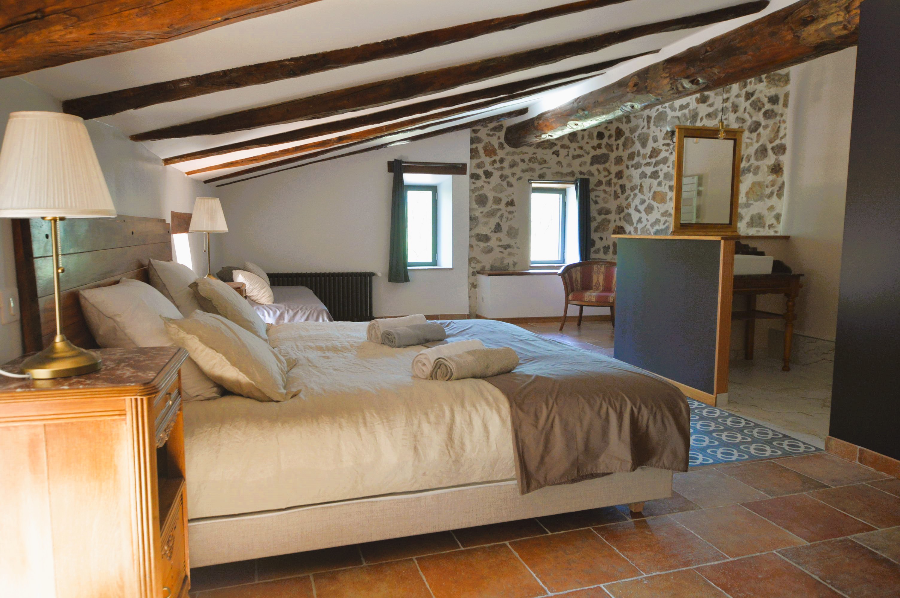Maryline et Stéphane vous proposent seulement quatre hébergements uniques, décorés avec soin et élégance : trois chambres confortables, ainsi qu’un Mazet indépendant entièrement équipé, idéal pour les séjours en famille ou les clients souhaitant plus d’autonomie. Chaque espace combine le charme d’antan (sols carrelés, murs en pierres) avec le confort moderne (climatisation).