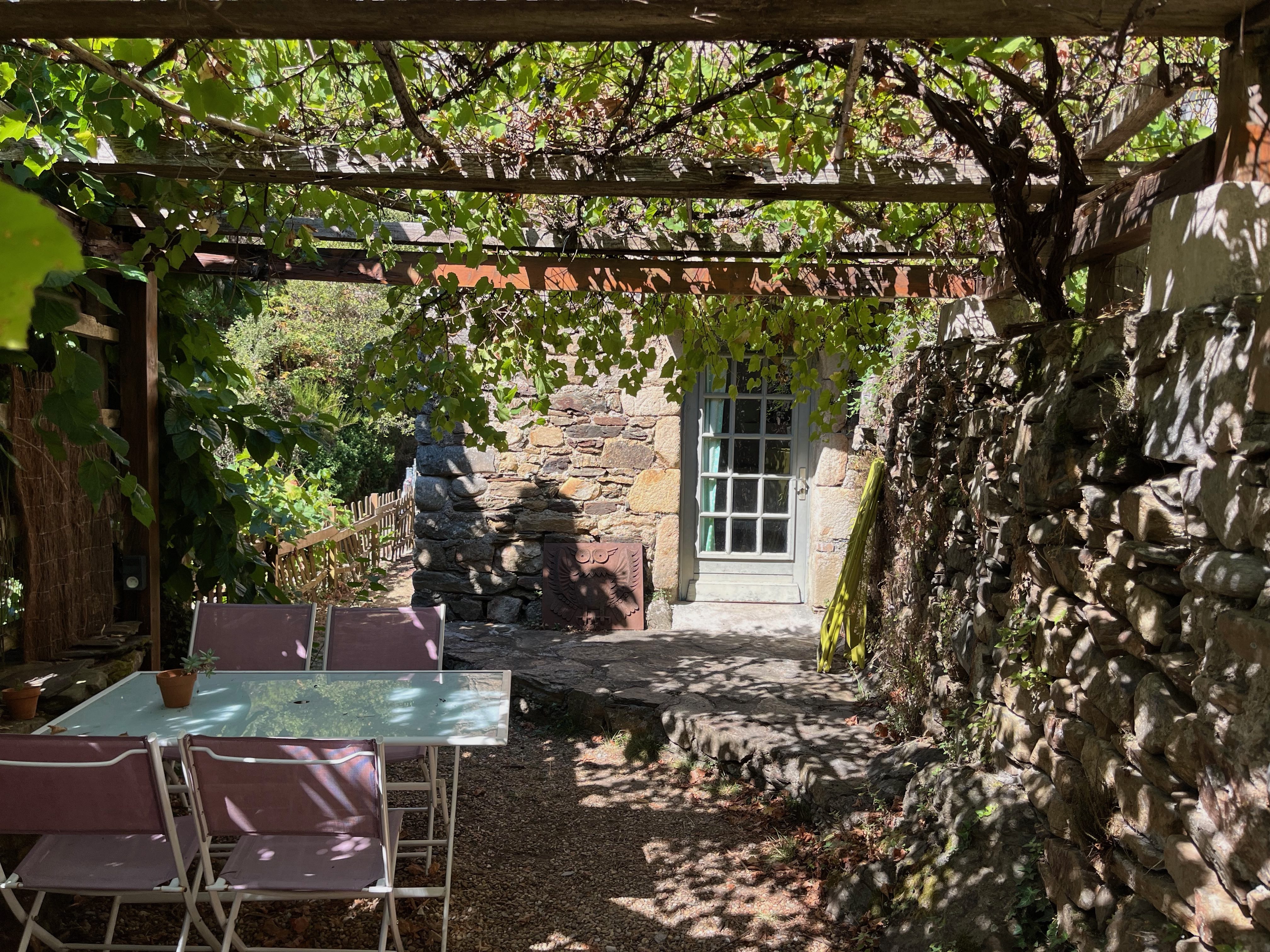 A 6 km de Saint Jean du Gard (Gard) ce gîte pour deux personnes est situé près de la charmante piscine (partagée) creusée dans la roche. Parfait pour un couple avec ou sans bébé, il est composé à l’étage d’une grande chambre non fermée, d’une cuisine/salle à manger donnant sur une terrasse ombragée, d’une grande salle de bain avec vue sur la nature. Piscine accessible de juin à septembre. Baignade en rivière à 10mn à pieds. Canyoning à 3 km. En septembre, vous n’aurez qu’à lever le bras pour savourer notre délicieux raisin au goût de framboise : variété ancienne garantie ! Quelques pas de plus et vous pourrez vous reposer à l’ombre des arbres de notre verger.