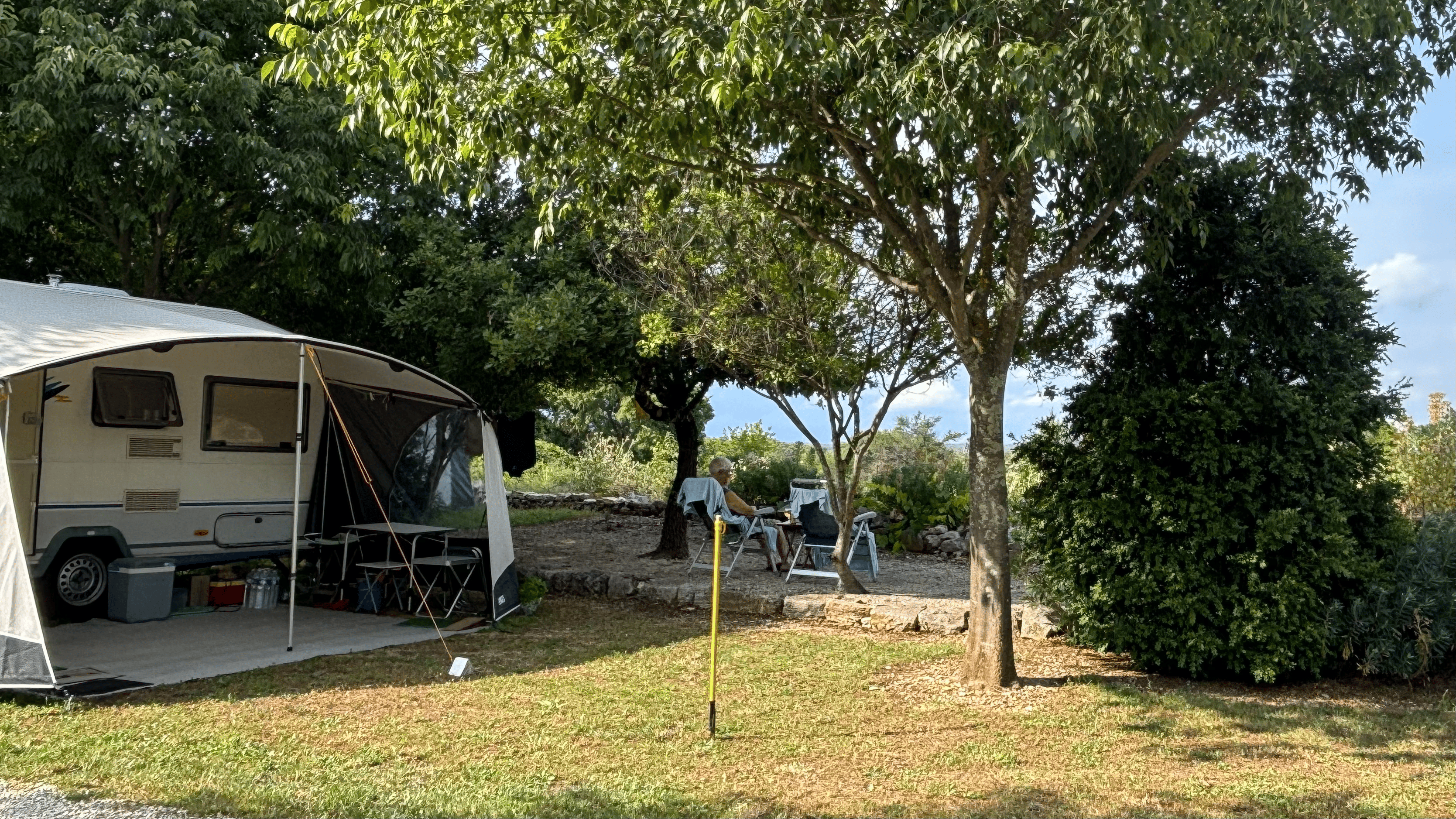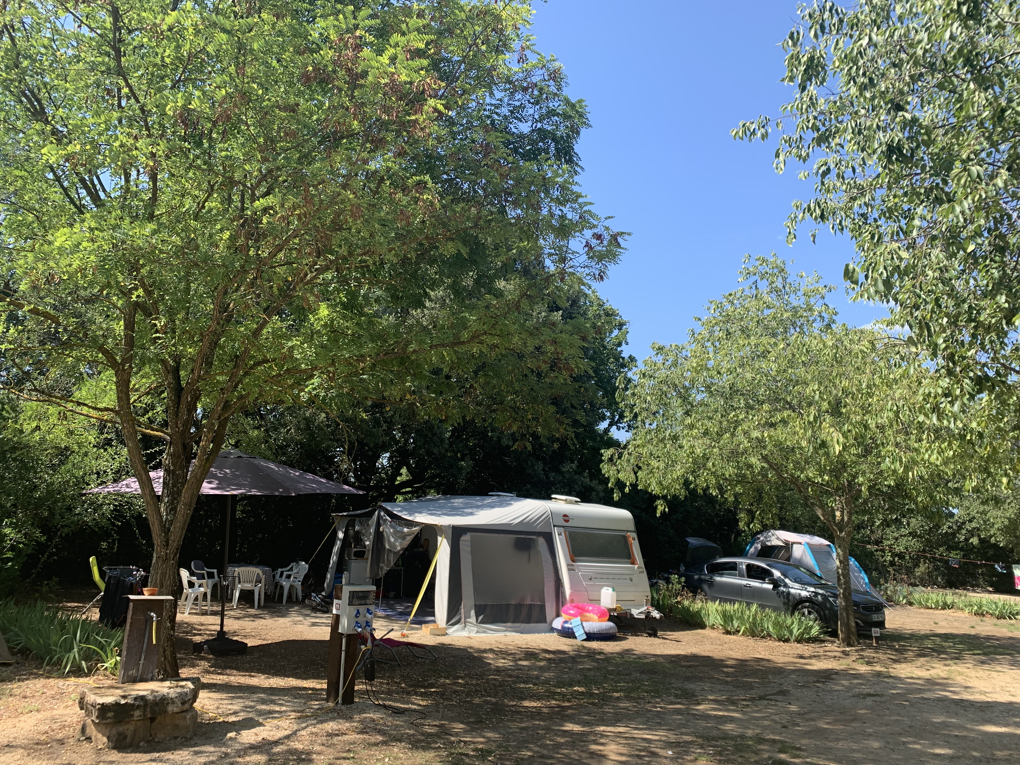 Le camping propose 25 emplacements ombragés ou semi‑ombragés répartis sur un terrain naturel de 3 hectares. Une piscine chauffée est accessible sur place et partagée avec les quatre gîtes du domaine. Une plage privée au bord de la rivière Cèze se situe à 2 km.