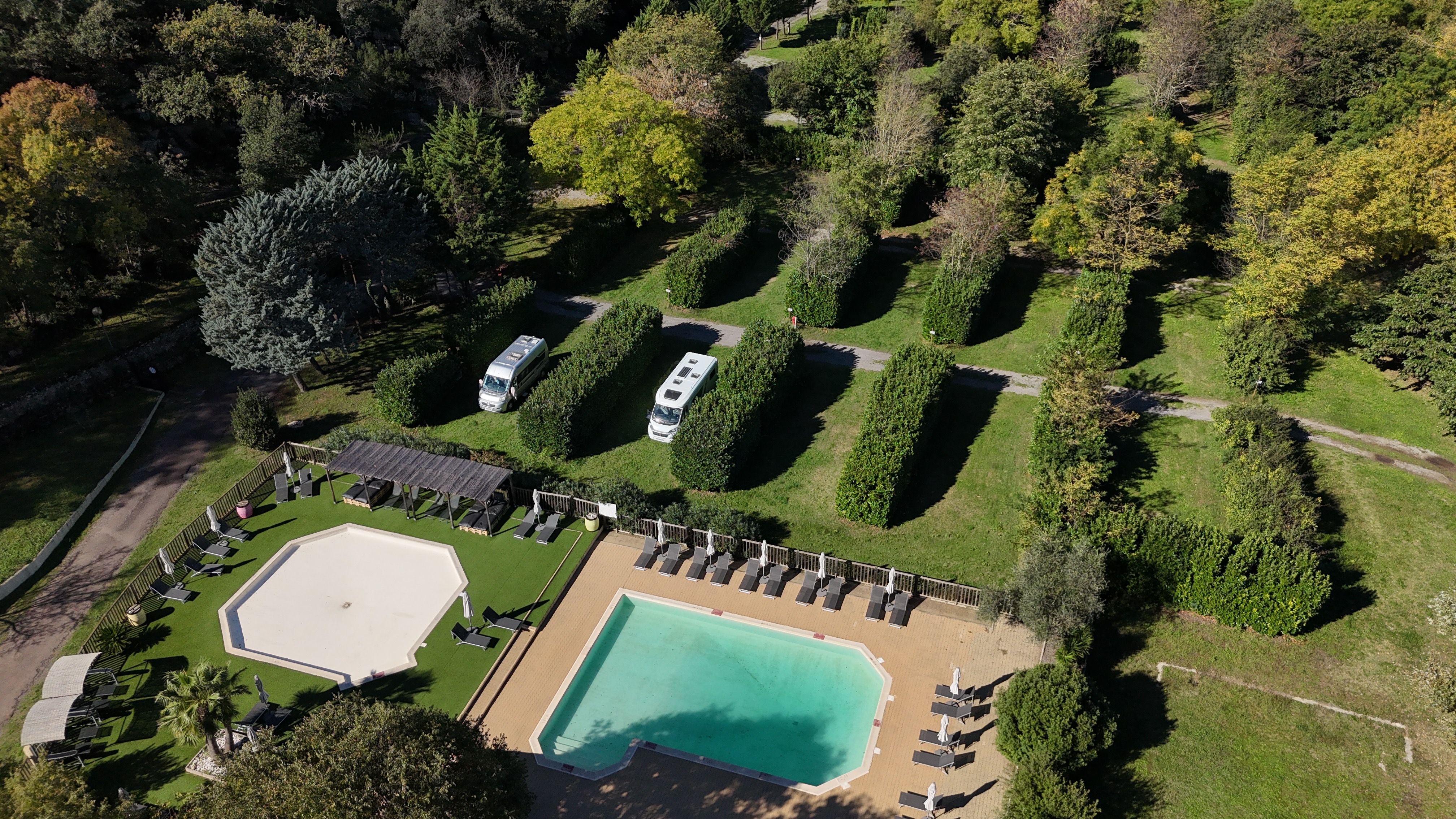 – des emplacements séparés par de hautes haies : intimité garantie