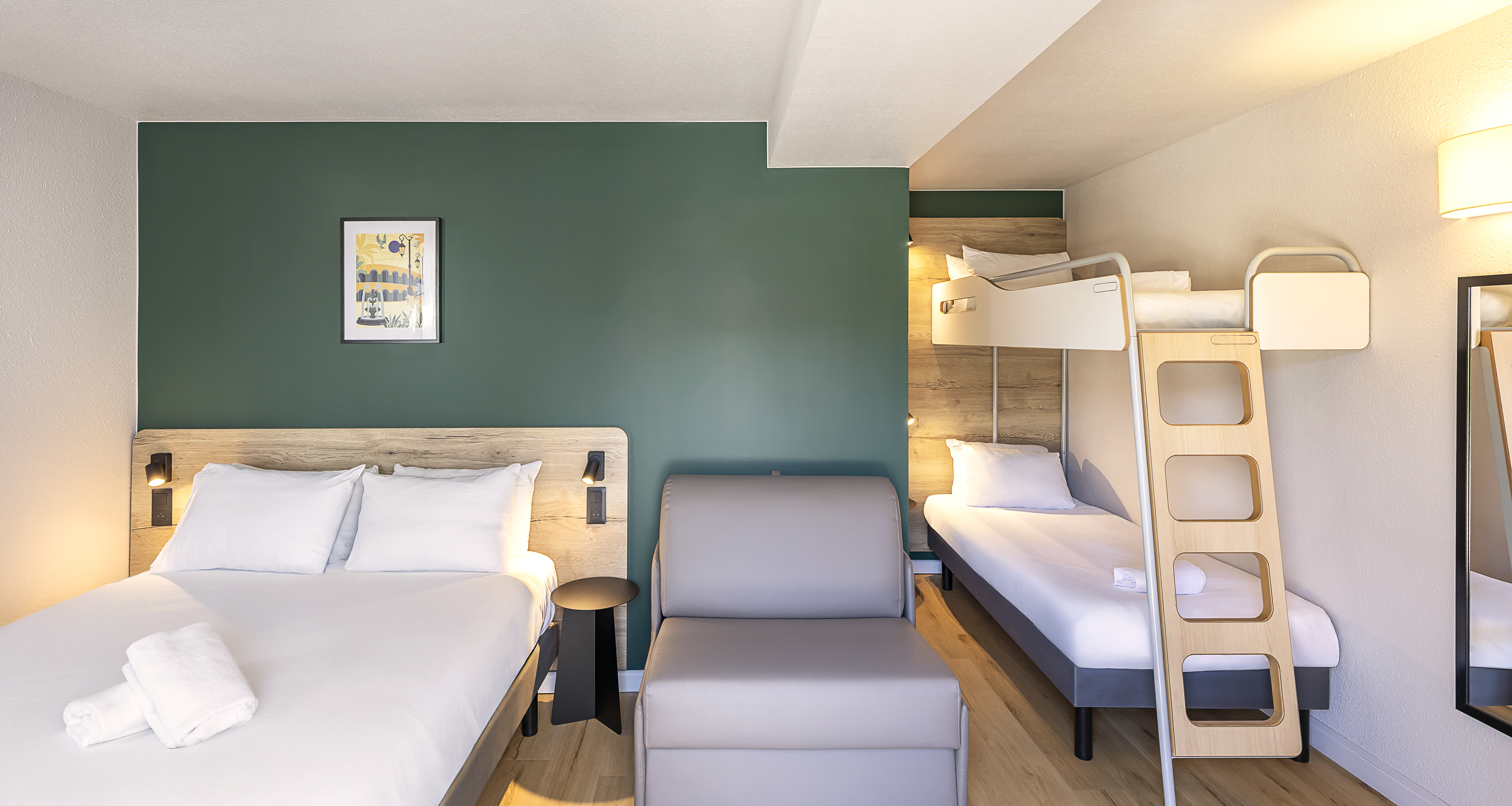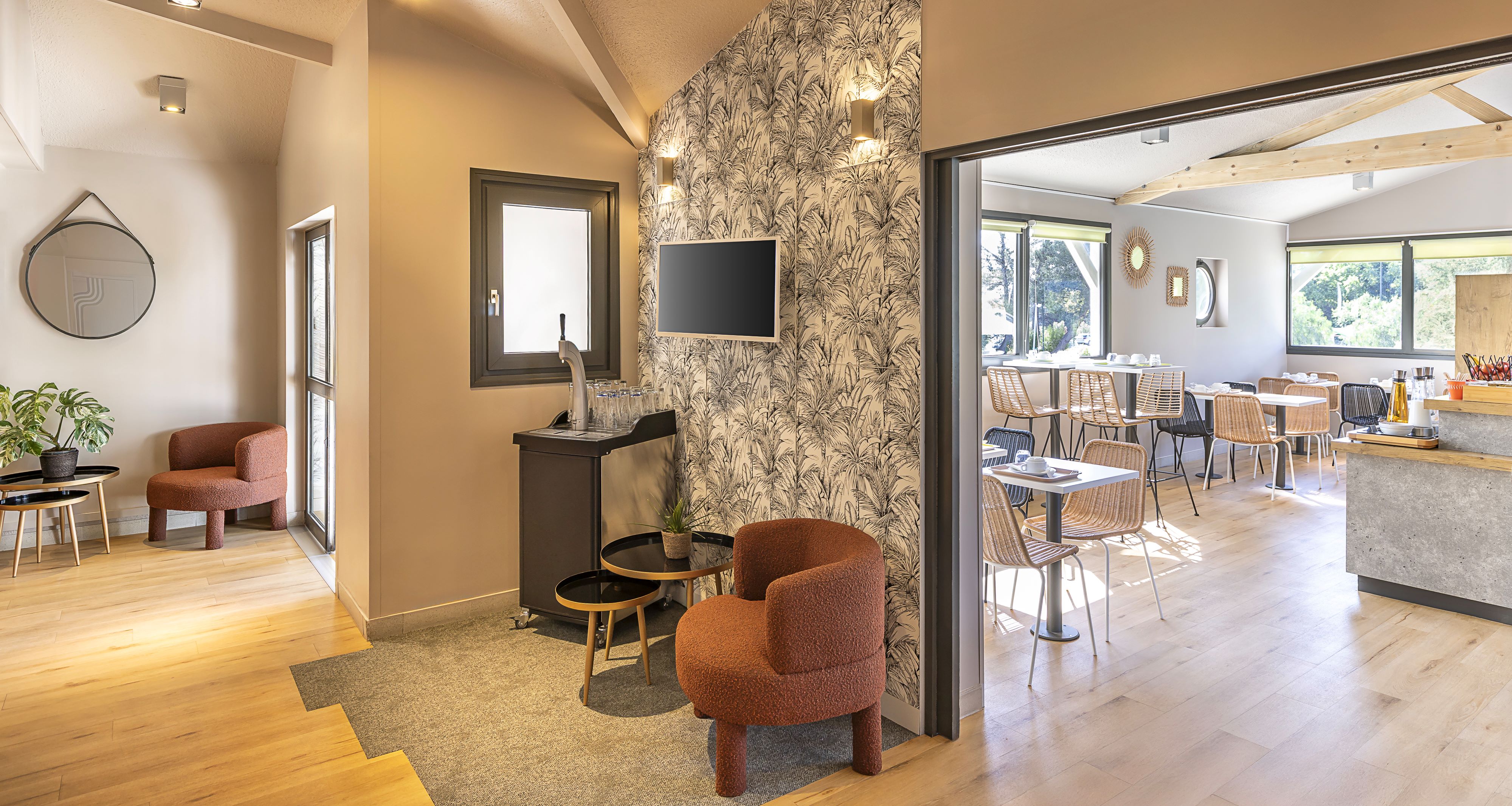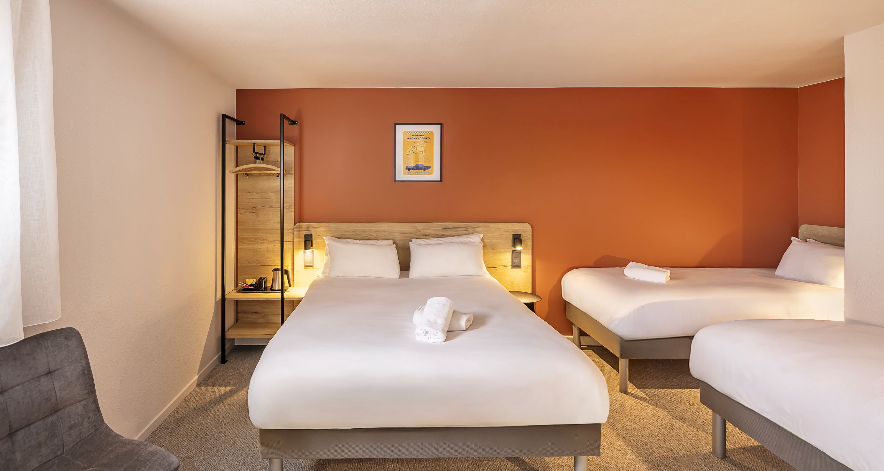 Hotel de 56 chambres climatisées, accueil 7/7j-24/24h, parking sécurisé gratuit pouvant accueillir les bus, piscine ouverte l’été juillet-août, terrasse, wifi gratuit