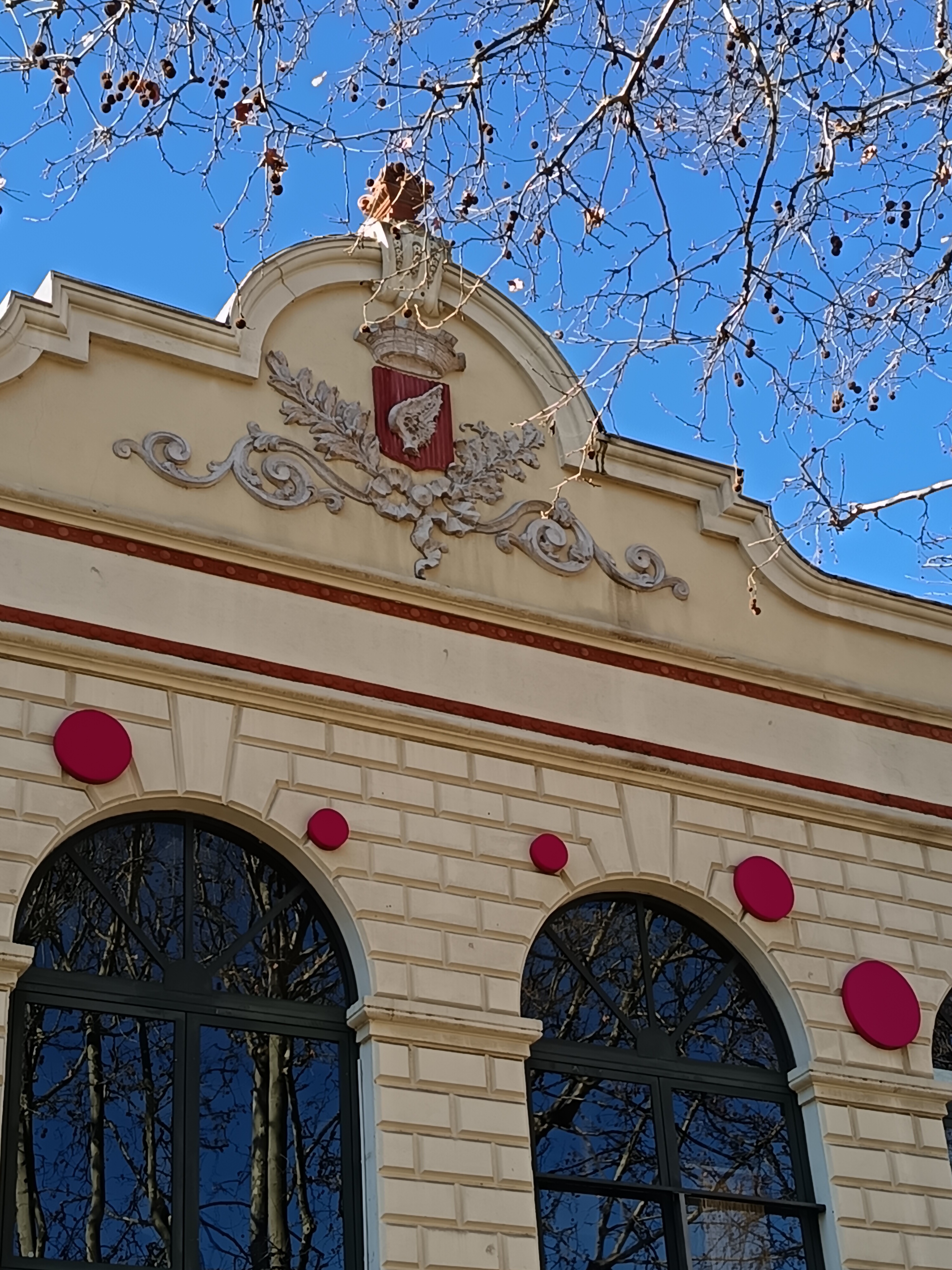 On trouve le blason sur la façade de l’hôtel de ville mais aussi au-dessus de la porte d’entrée de l’Espace André Chanson ou sur le haut du bâtiment qui se trouve en face le tribunal.