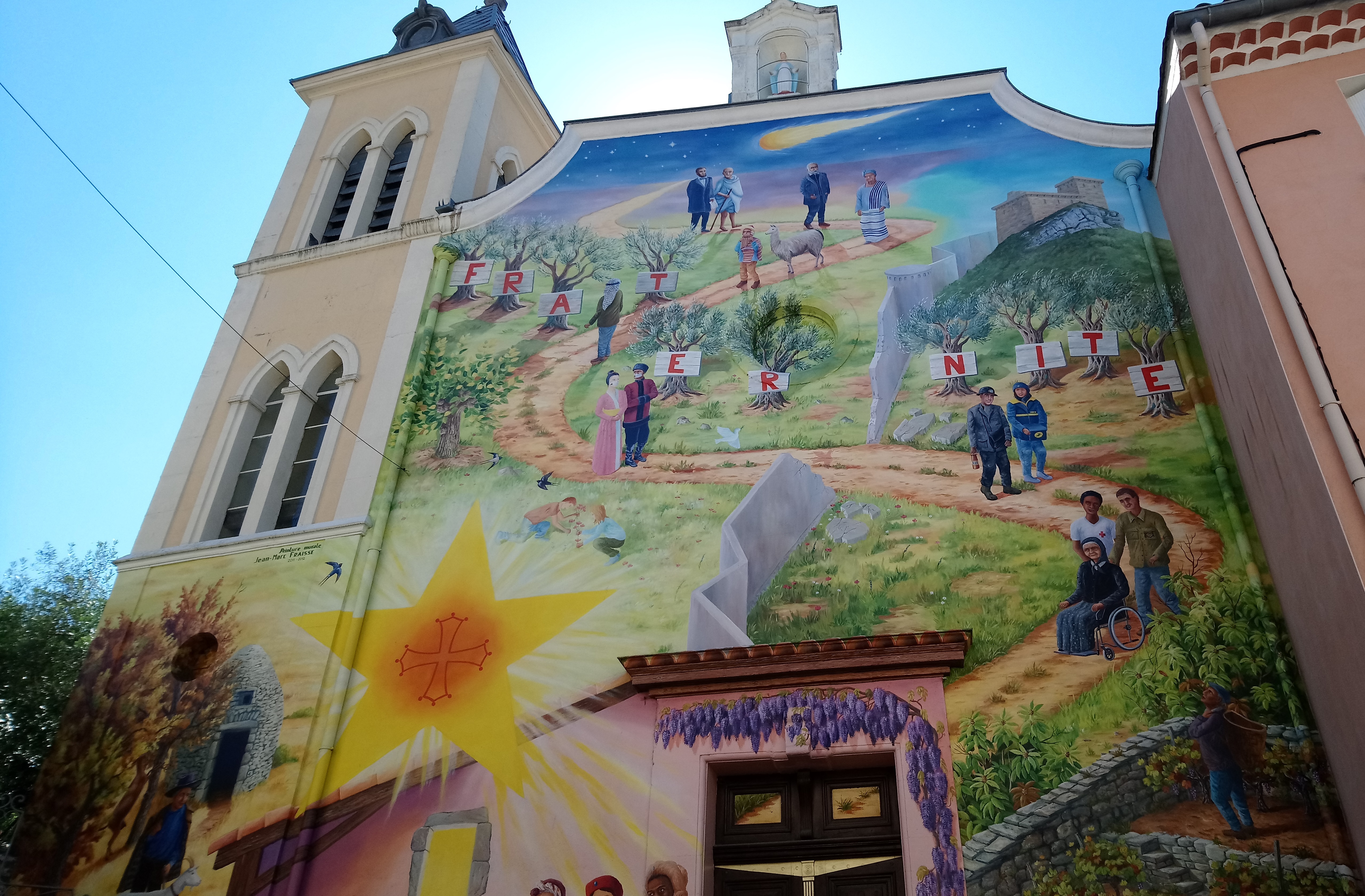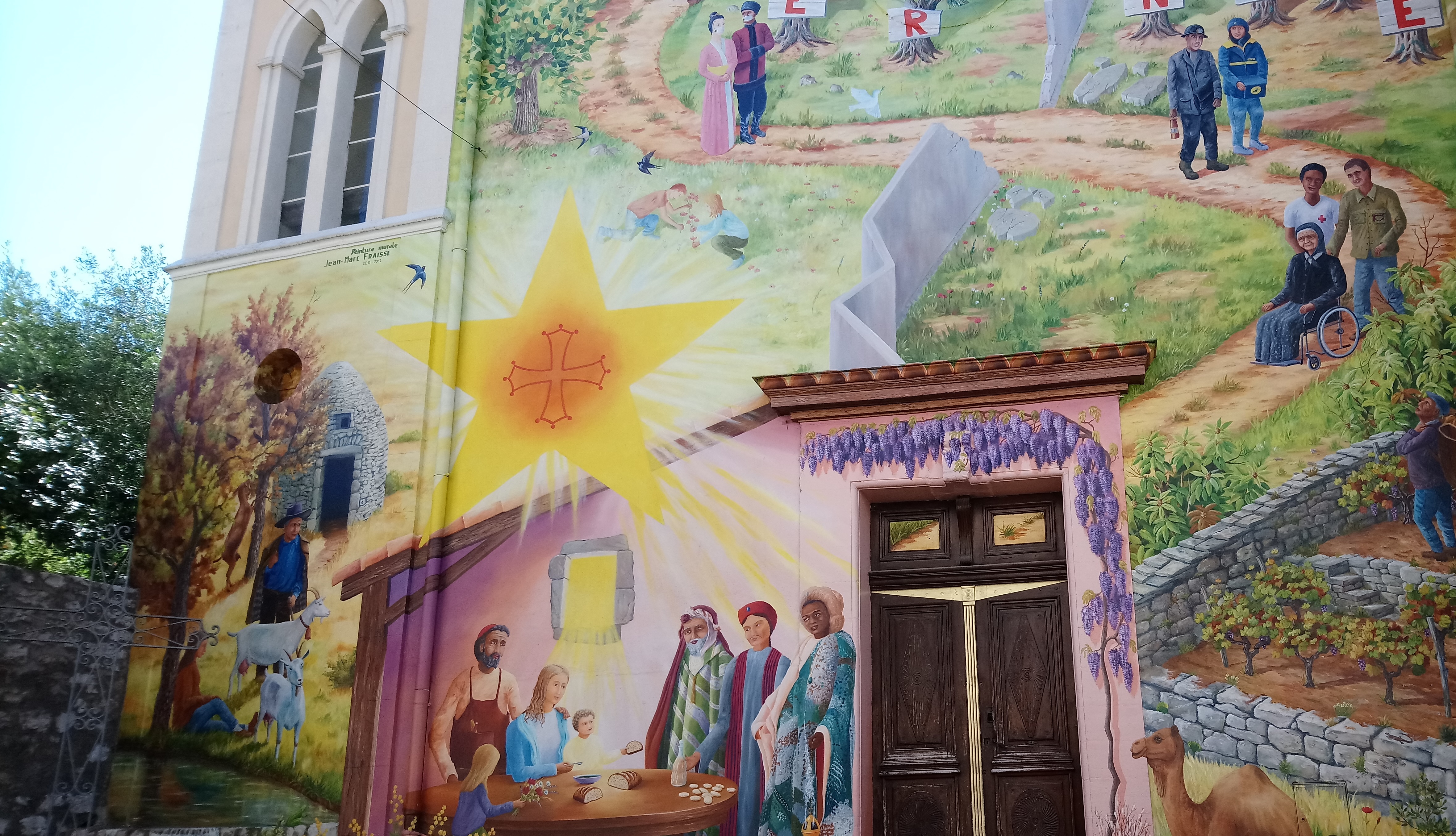 Sur sa façade, une fresque de 12 mètres de haut a été peinte en 2012 par Jean Marc Fraisse. Elle raconte l’histoire des Rois Mages qui seraient passés dans ce village et auraient offert 3 cadeaux : le secret des oliviers (huile d’olives), le secret des cailloux noirs (charbon) et le secret des vers du mûrier (la soie).