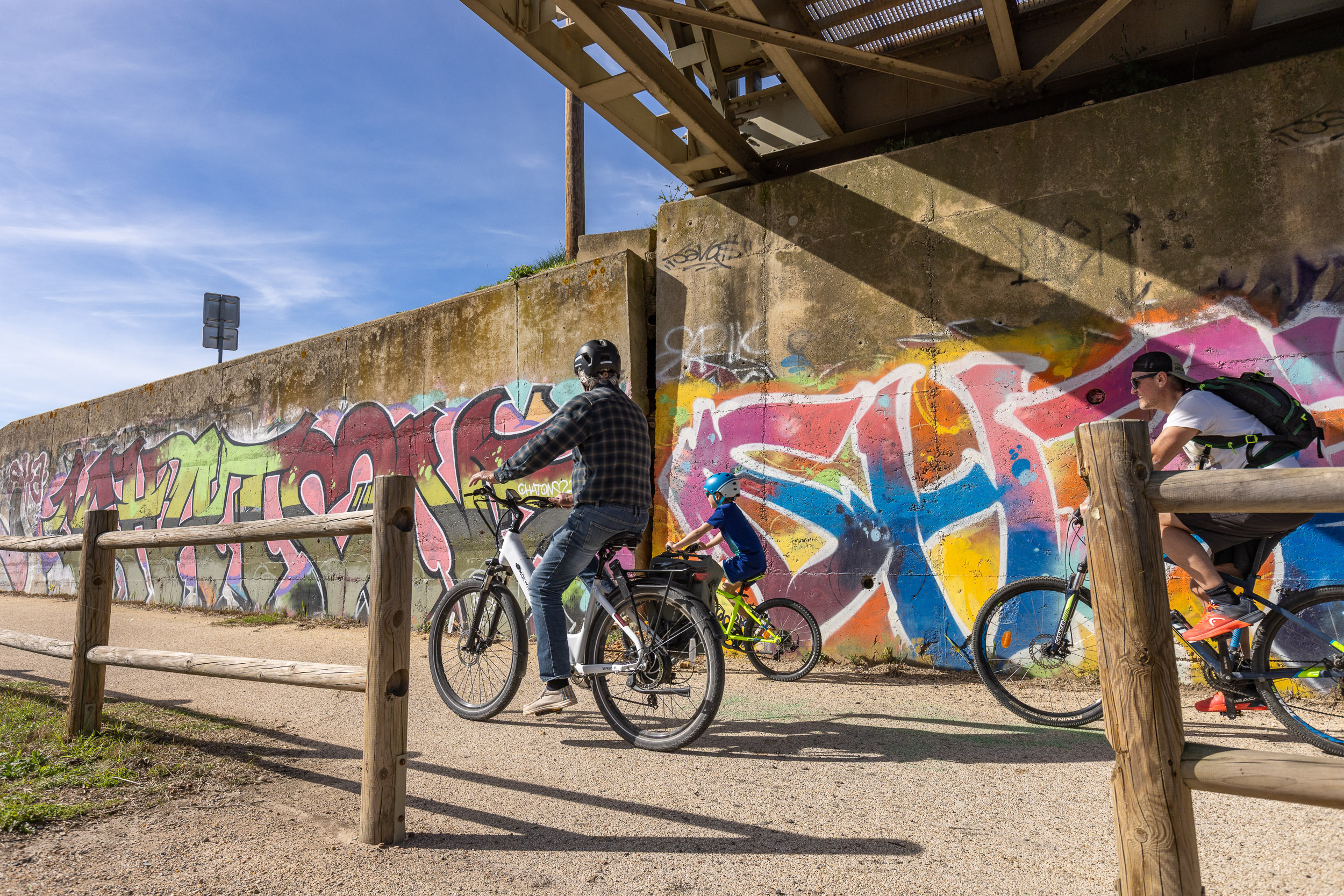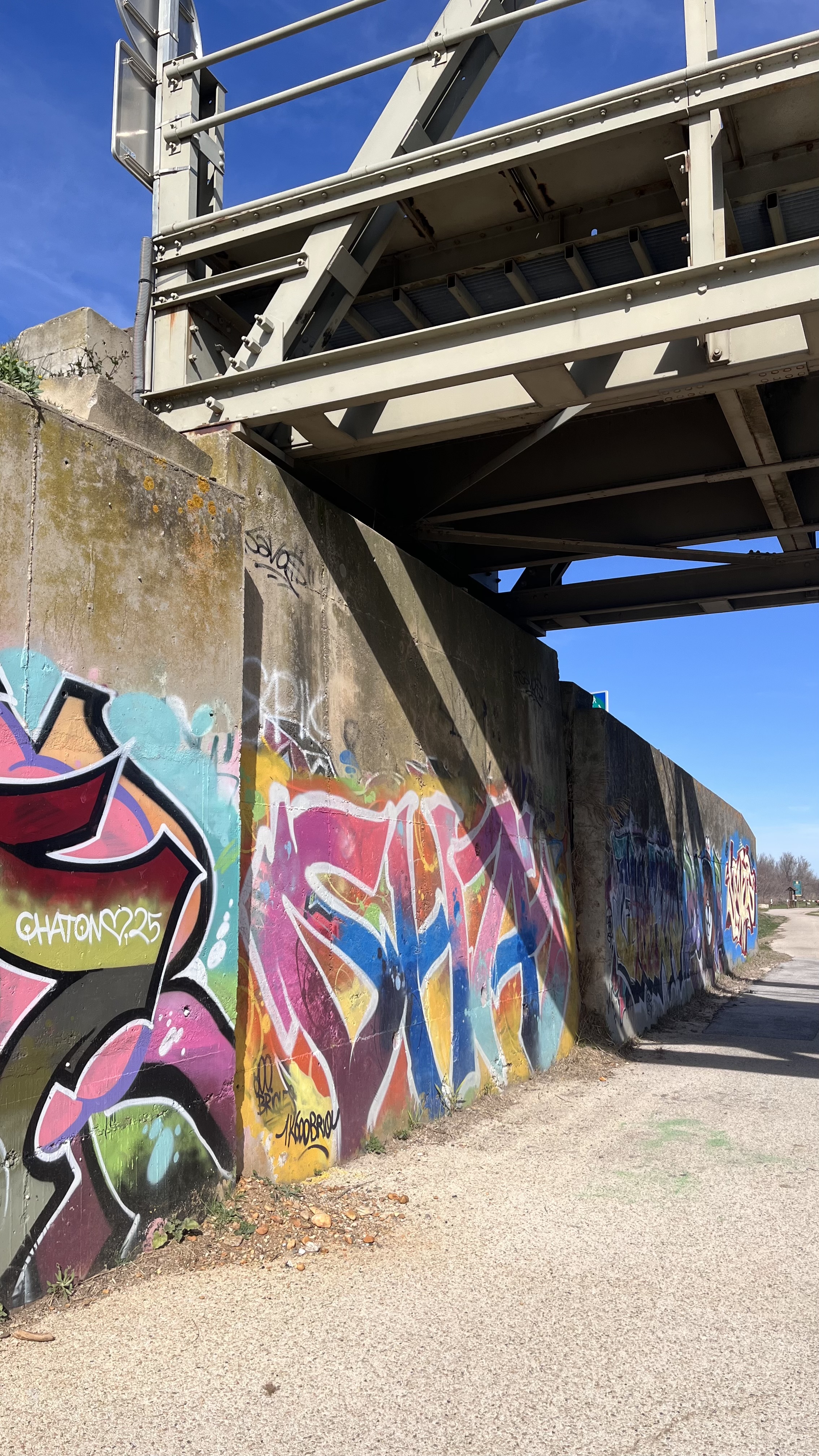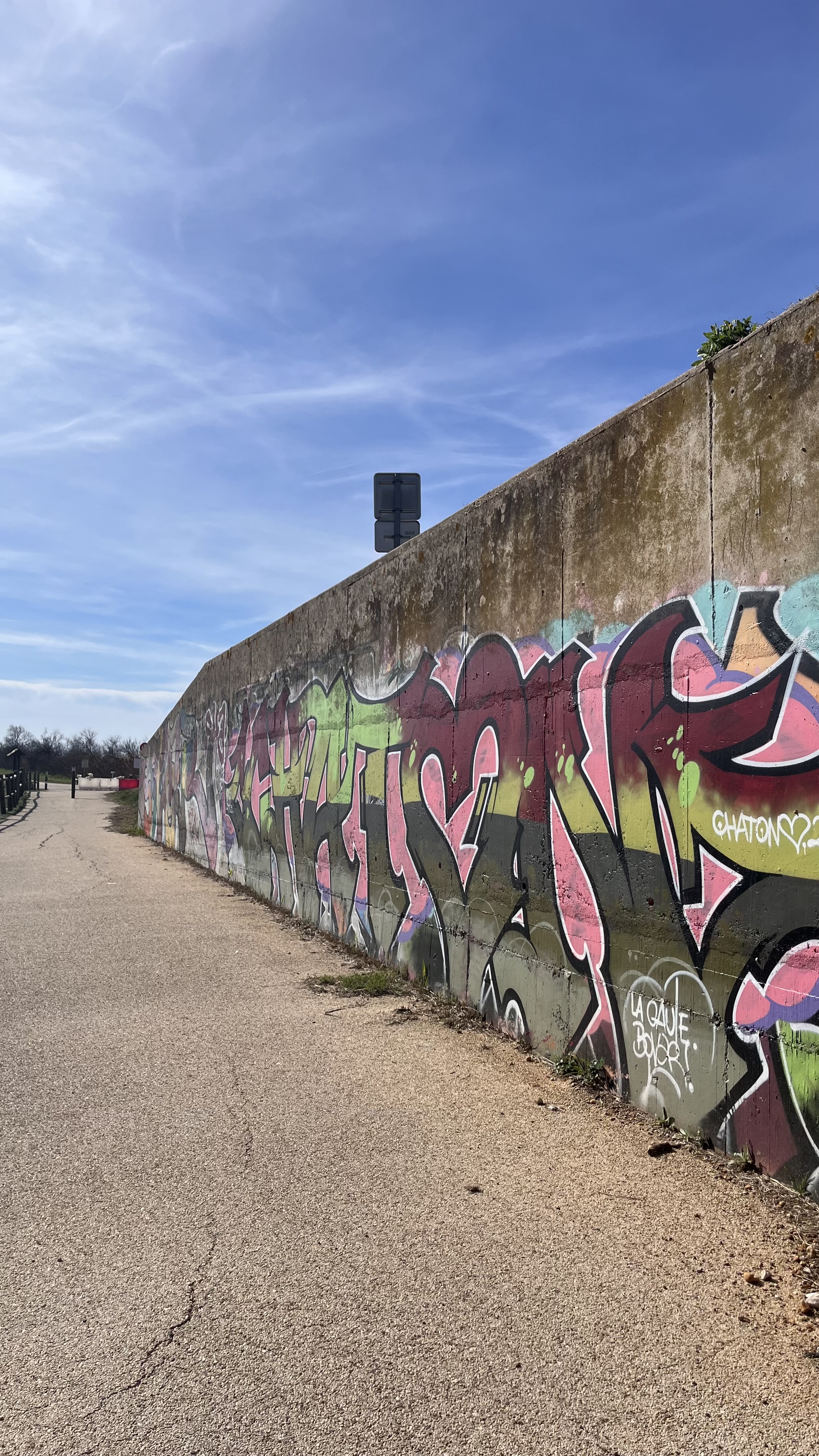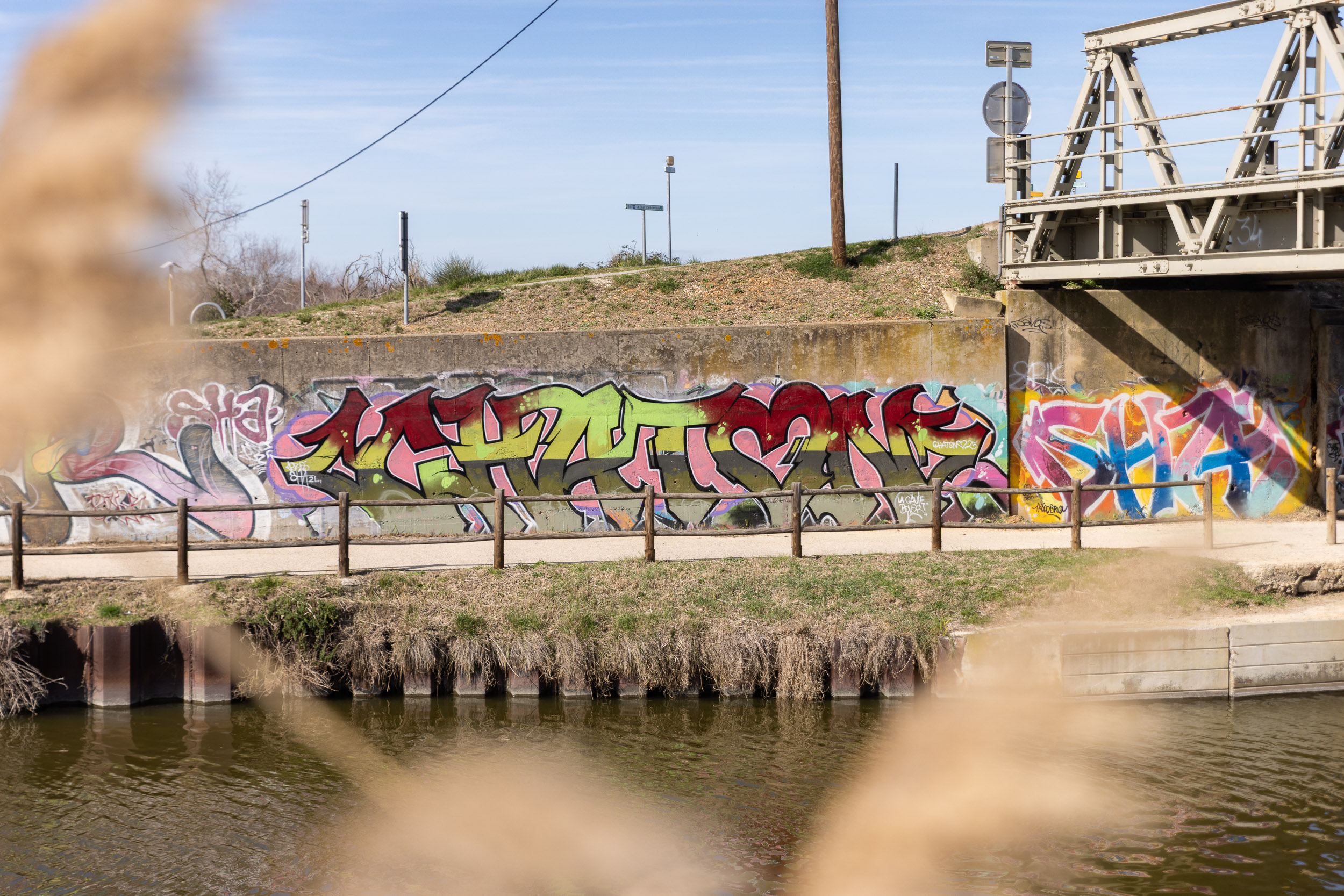 Situé sous le pont des Tourradons, sur la commune du Cailar, cet ensemble de fresques de street art vient habiller les murs bordant le canal du Rhône à Sète, au cœur d’un itinéraire très fréquenté par les cyclistes et promeneurs de la ViaRhôna.