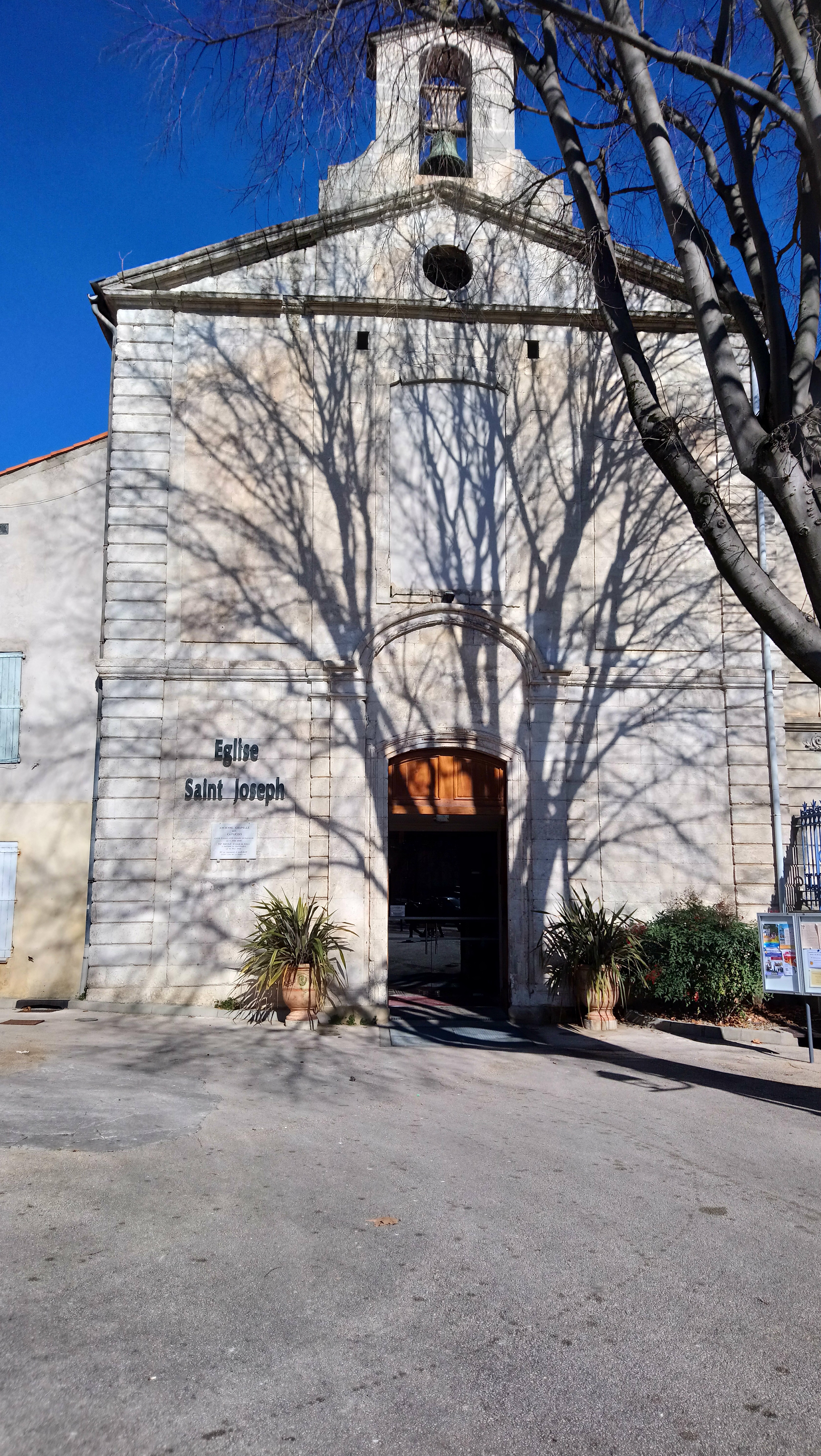 L’originalité de l’église Saint-Joseph tient des deux chapelles attenantes rassemblées en une seule par un arc plein cintre en 1910 pour accueillir une communauté plus nombreuse.