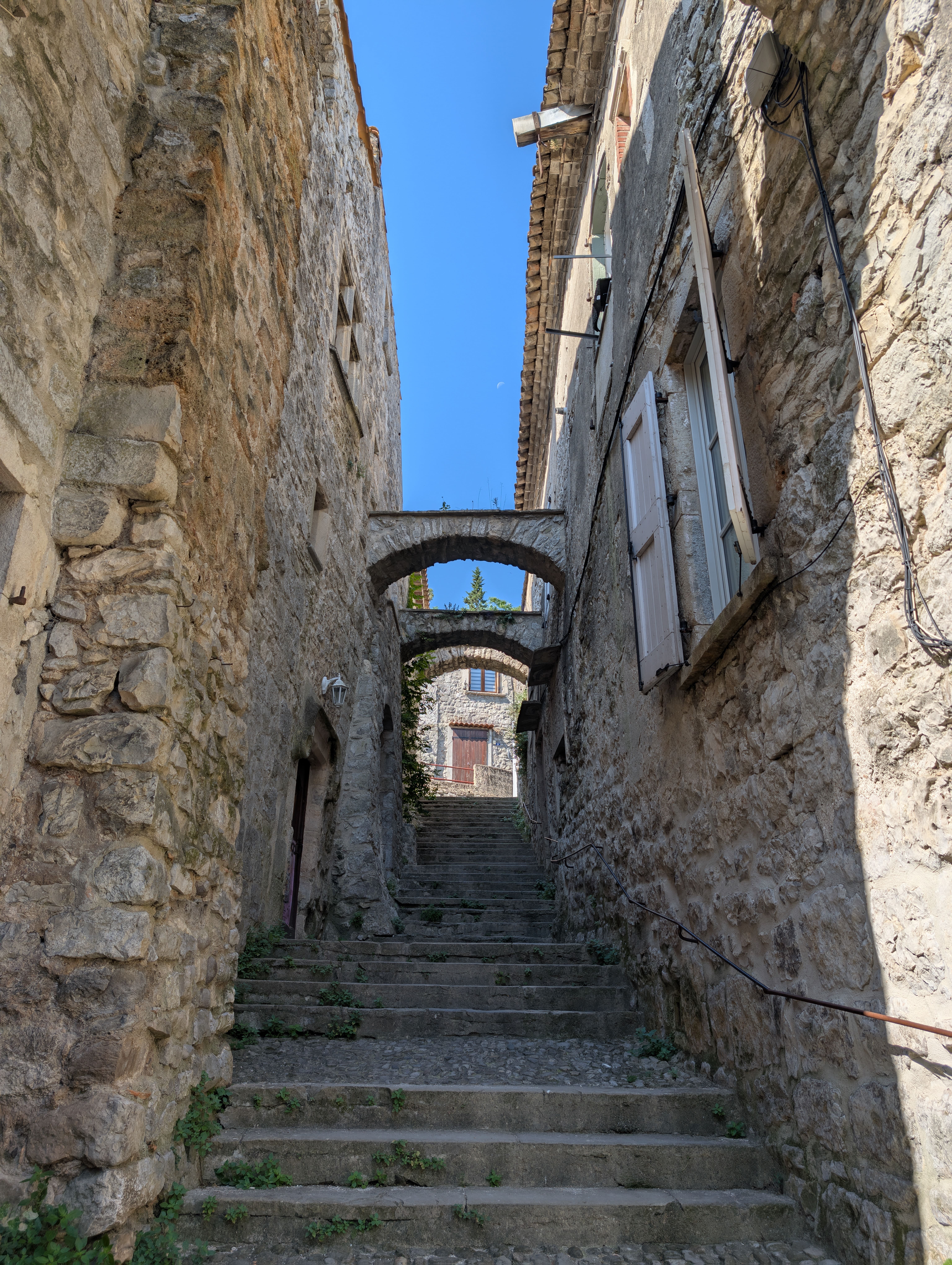 Empruntez ensuite la rue montante avec ses marches profondes, pavées de galets formant une calade: longez les vestiges de l’ancien couvent des Capucins. devenu le Château Russe sur le plateau, au-delà du Castellas et de l’ancienne muraille du castrum des Bermond, vous apercevrez le château de Roquevaire, résidence d’agrément de l’abbé de Sauve au 17º siècle.