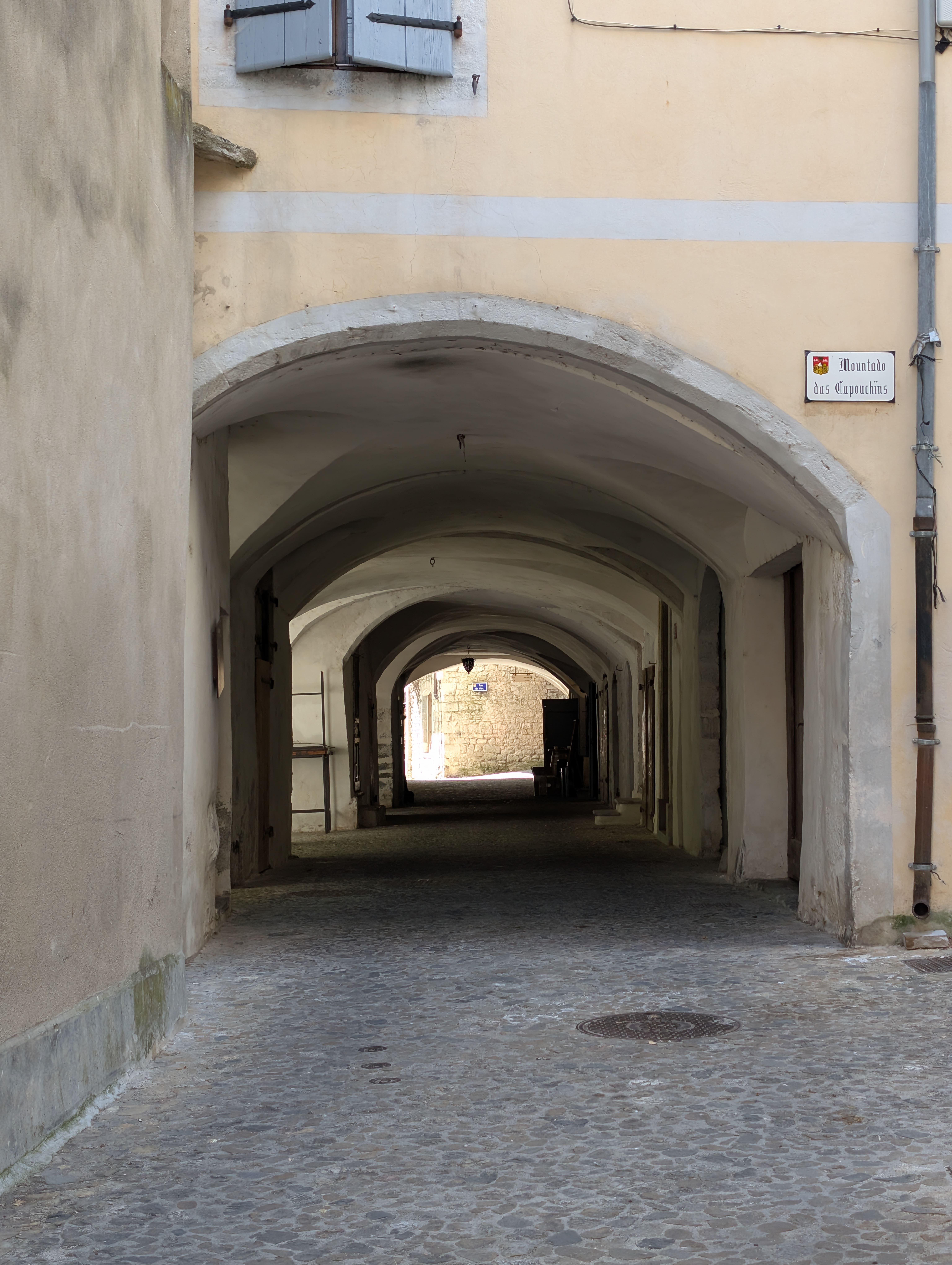 Le nom de fusterie évoque les tonneliers ou autres artisans du bois, appelés fustiers, qui travaillent ici, à l’abri des intempéries. Comme sous les autres passages de la ville médiévale, les voûtes sont blanchies à la chaux pour assainir le parement et renvoyer la lumière.