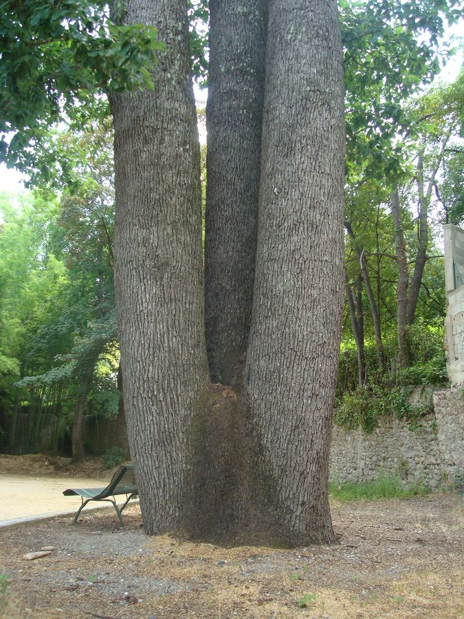 Celui d’Anduze, âgé de plus de 160 ans, avait en 2016 une circonférence de 6,28m en englobant les trois pieds pour une hauteur totale de 32m.