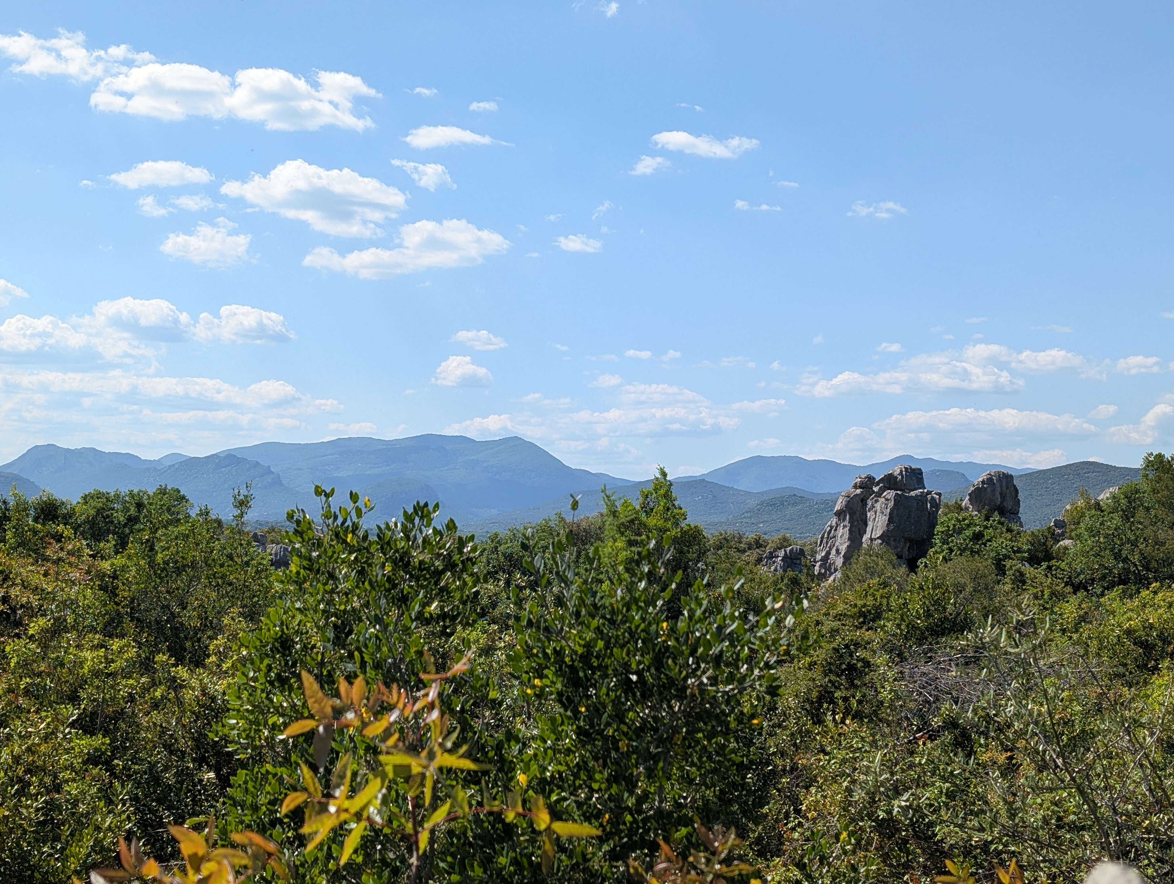 Des rochers fantastiques aux formes improbables de dressent au milieu d’une végétation dense, de type garrigue, constituée principalement de chênes verts et de lauriers sauce.