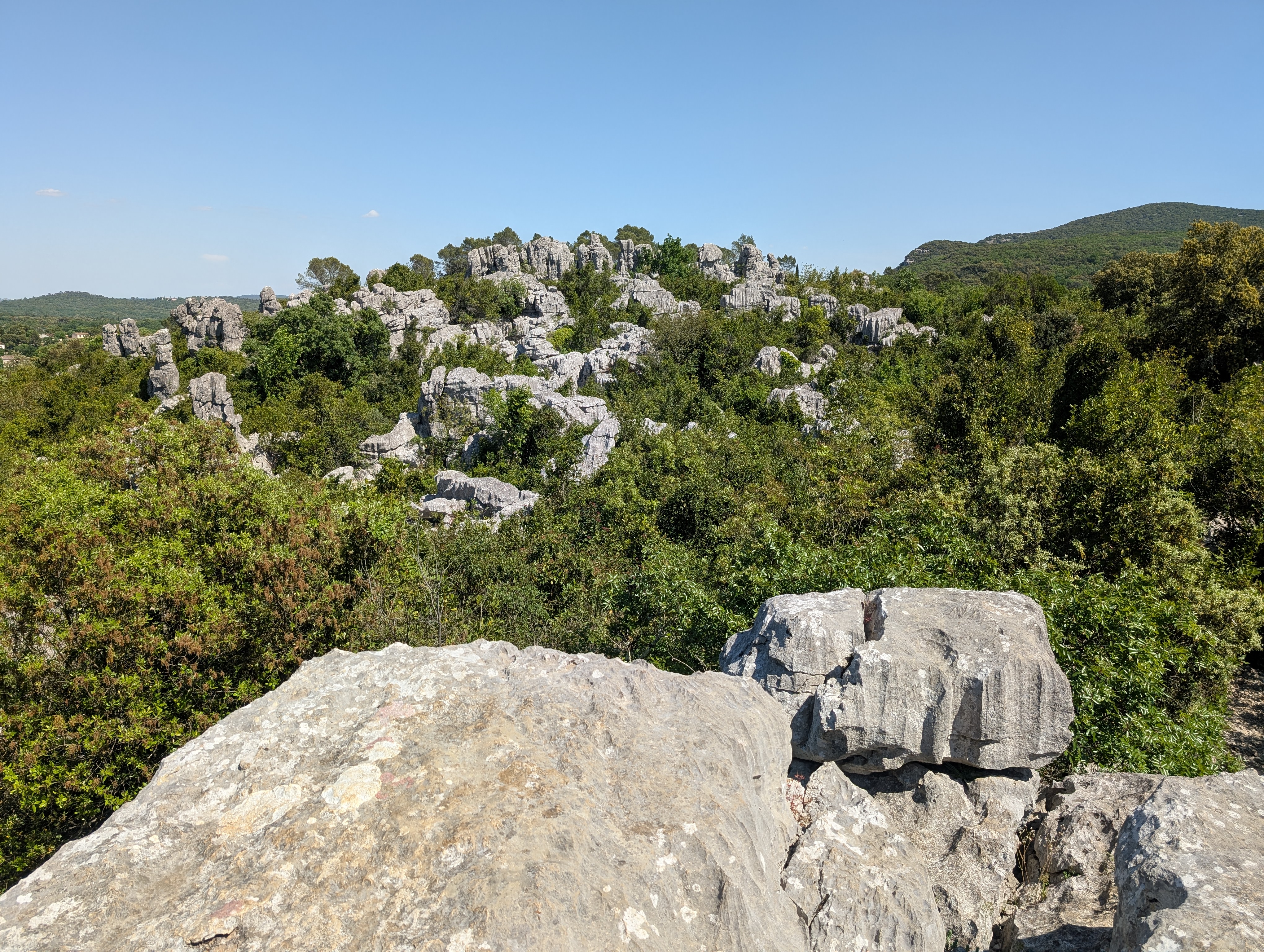 Chaos de rochers dans la garrigue, façonné par l’érosion qui a formé des statues géantes.
