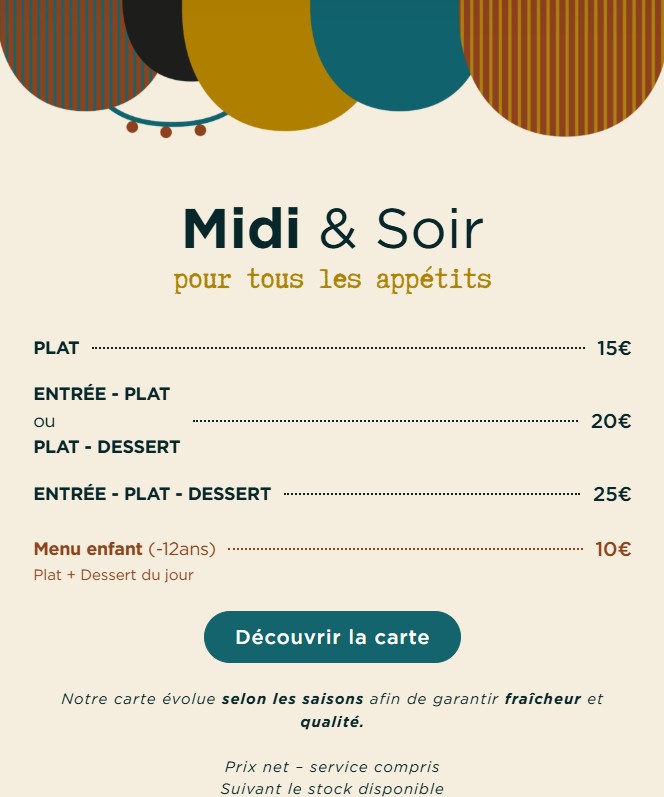 Ici, la cuisine est sincère, les produits sont frais, et l’ambiance reste simple et vraie.