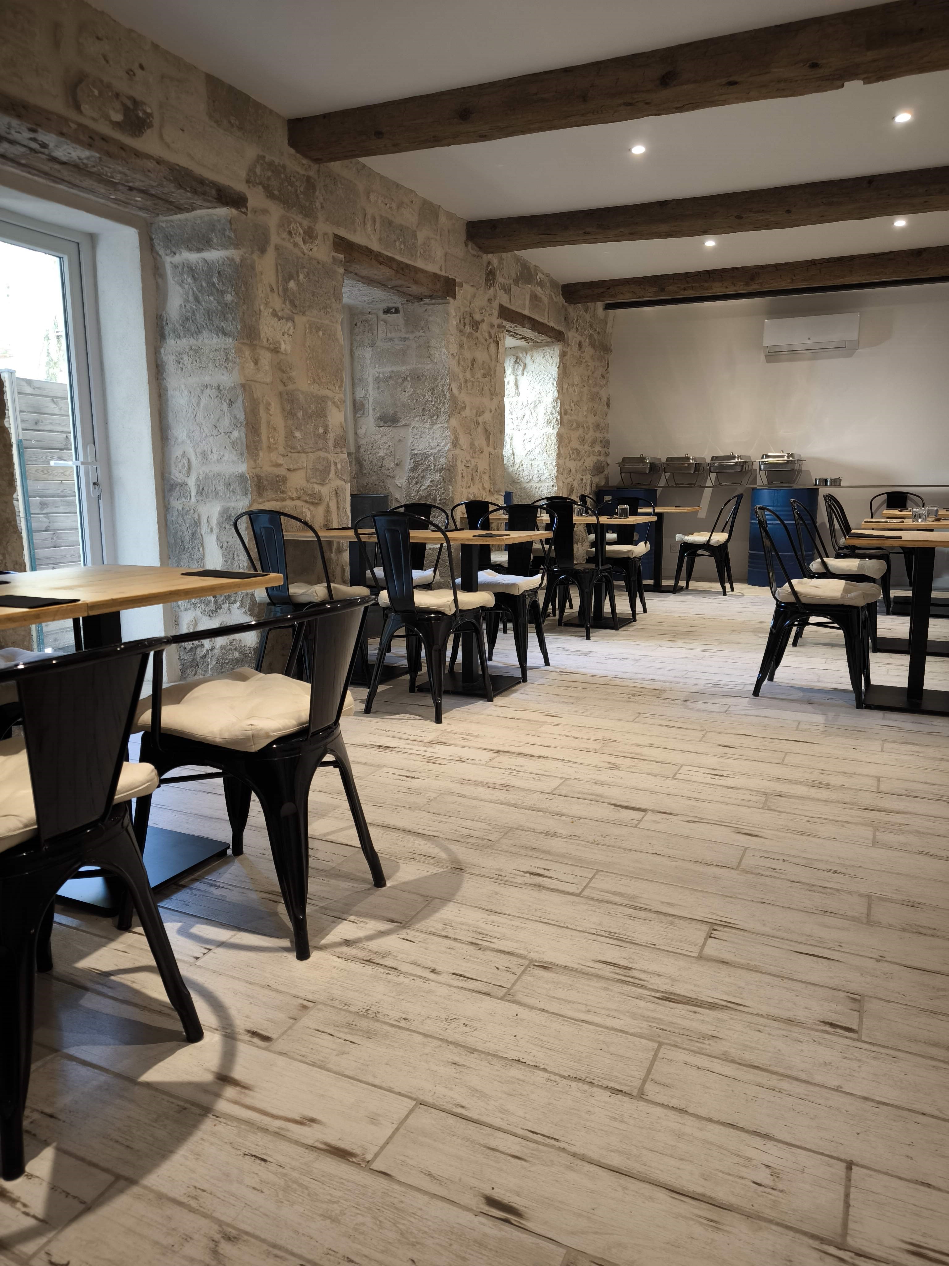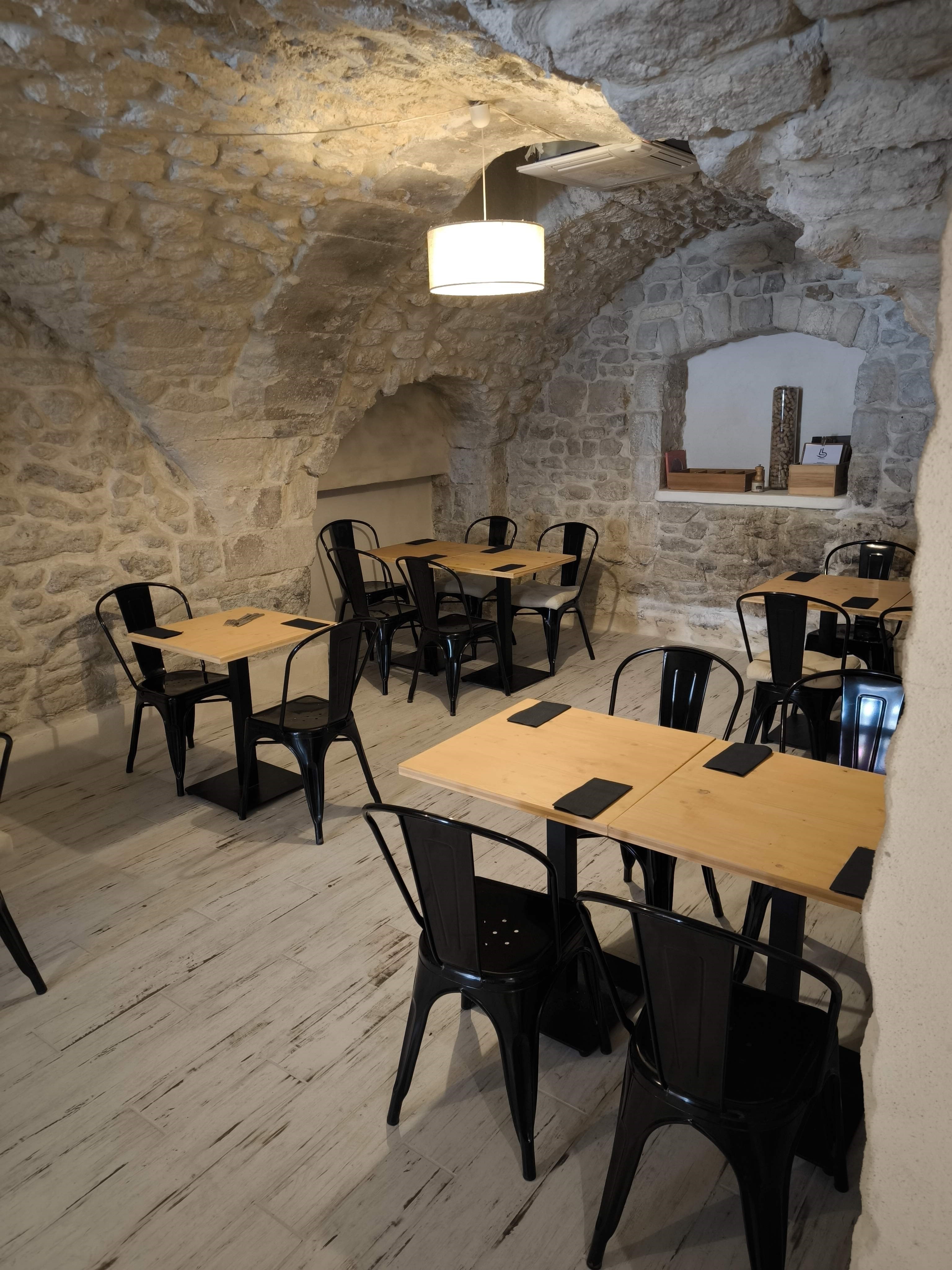 Restaurant traditionnel, Restaurant de spécialités étrangères, Restaurant bistronomique.À l’intérieur que ce soit dans la salle voûtée en pierre sèche d’époque ou dans la seconde partie plus contemporaine, notre nouvelle extension, également au beau jour sur la terrasse ombragée, venez passer un bon moment au cœur du vieux village d’Aramon.