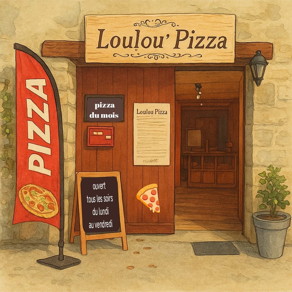 Pizzeria.Petite enseigne locale qui prépare des pizzas artisanales uniquement à emporter
