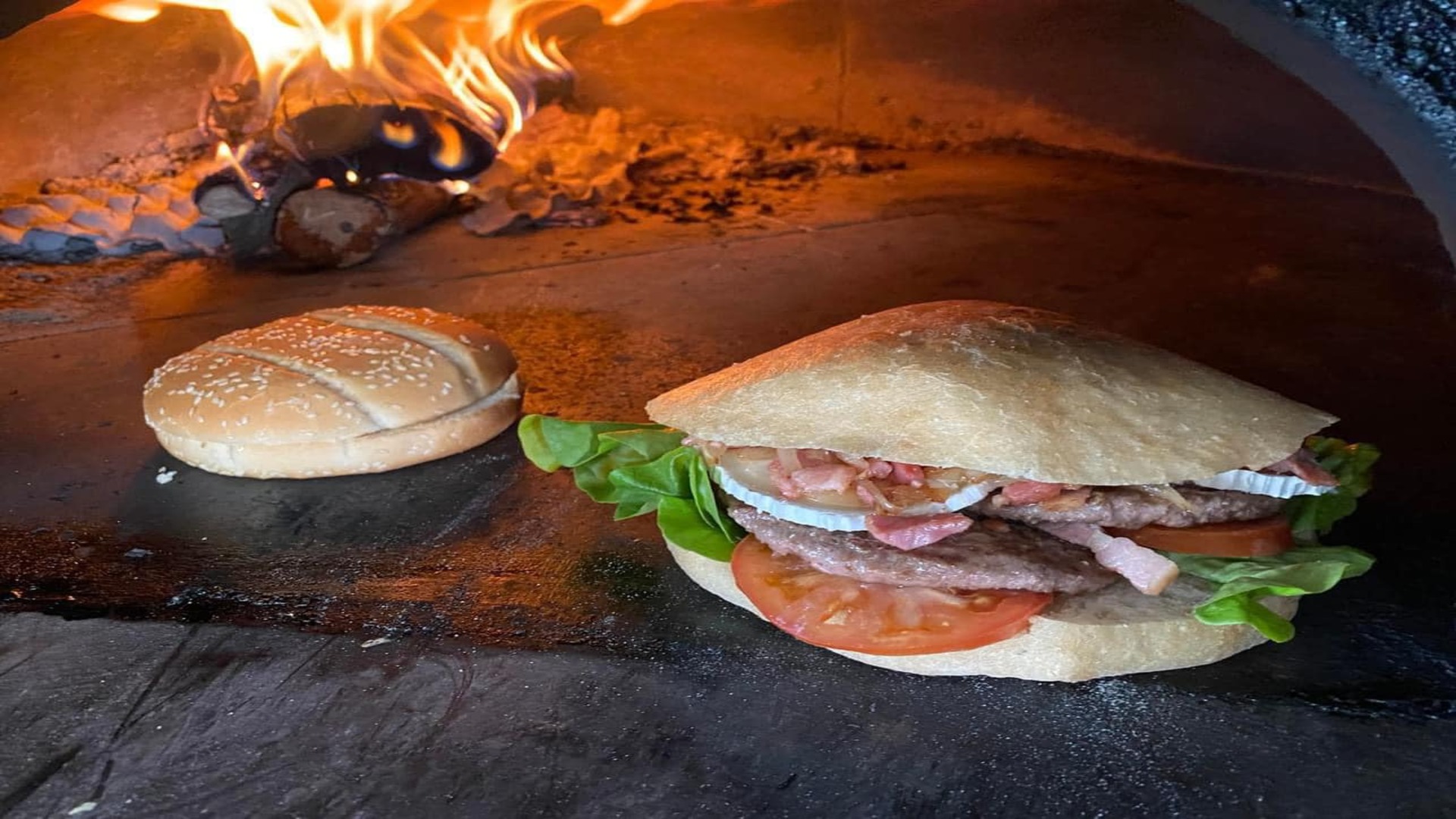 Généreuse pizza au feu de bois.