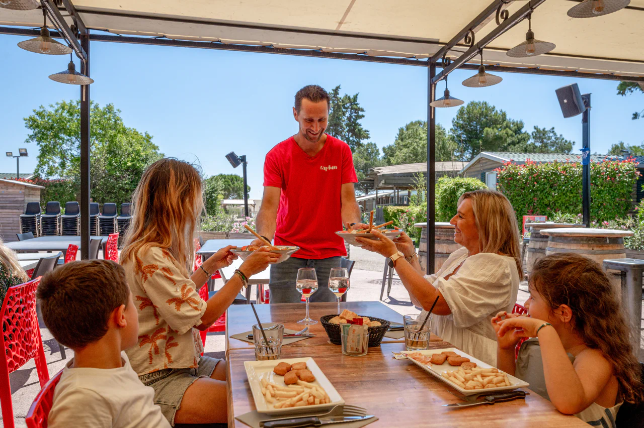 Un restaurant au coeur du camping Capfiun Fleur de Camargue.