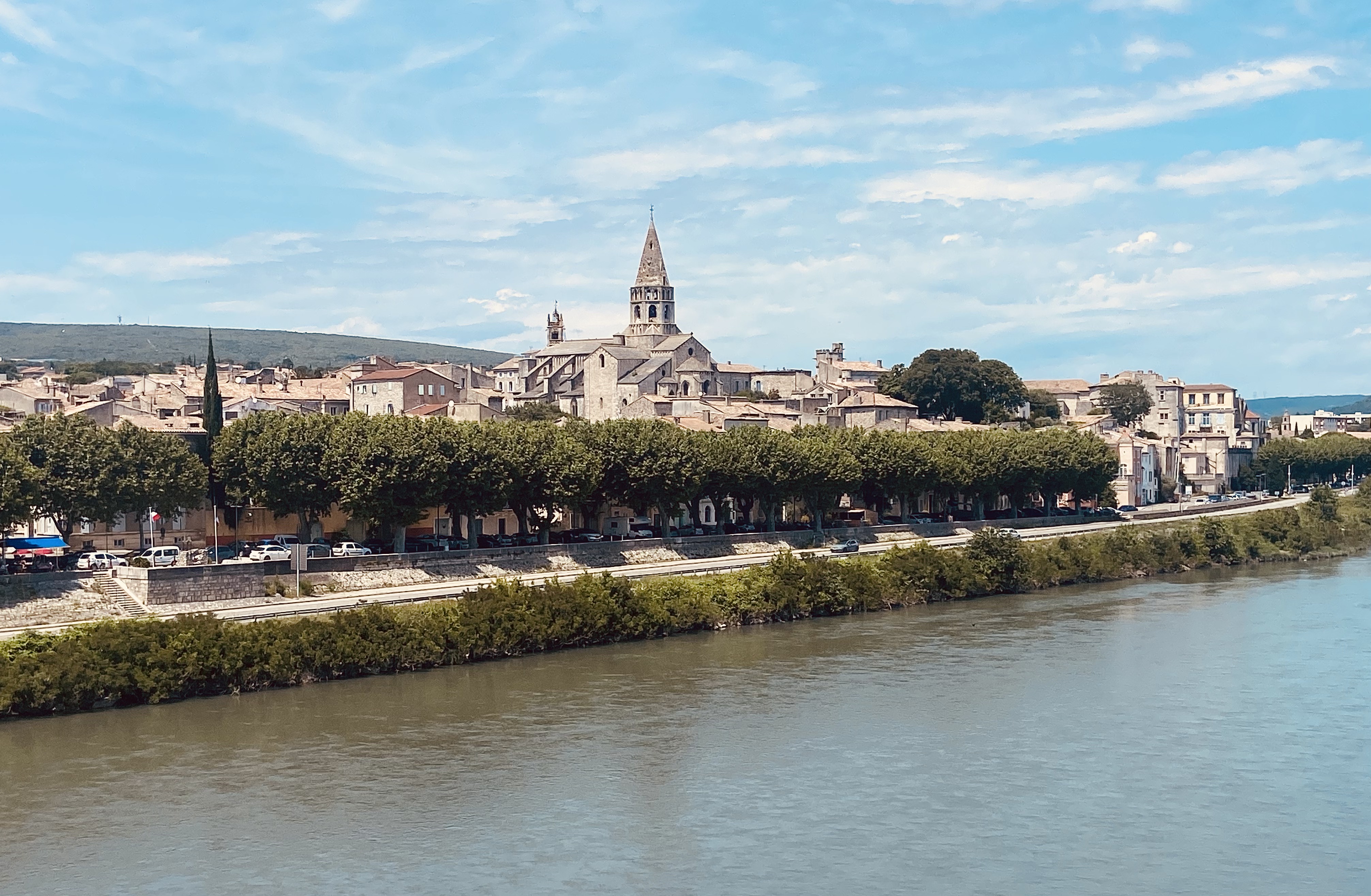 Alors que l’on passe les ponts d’Avignon, se profile Villeneuve. L’élégance de ses collines et du fort Saint-André suggère un détour. Le parcours se déroule ensuite entre la falaise calcaire et le canal qui longe le fleuve majestueux.