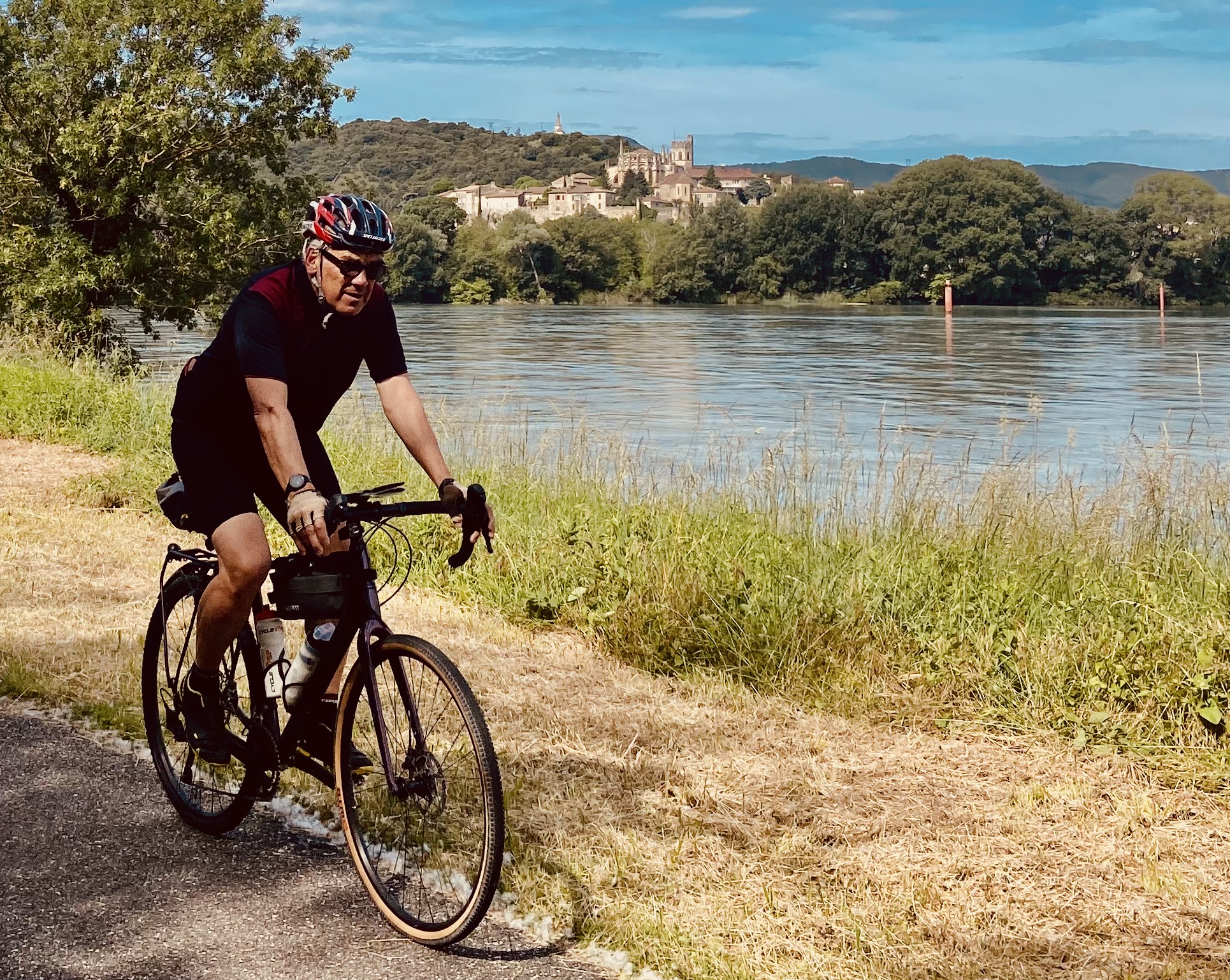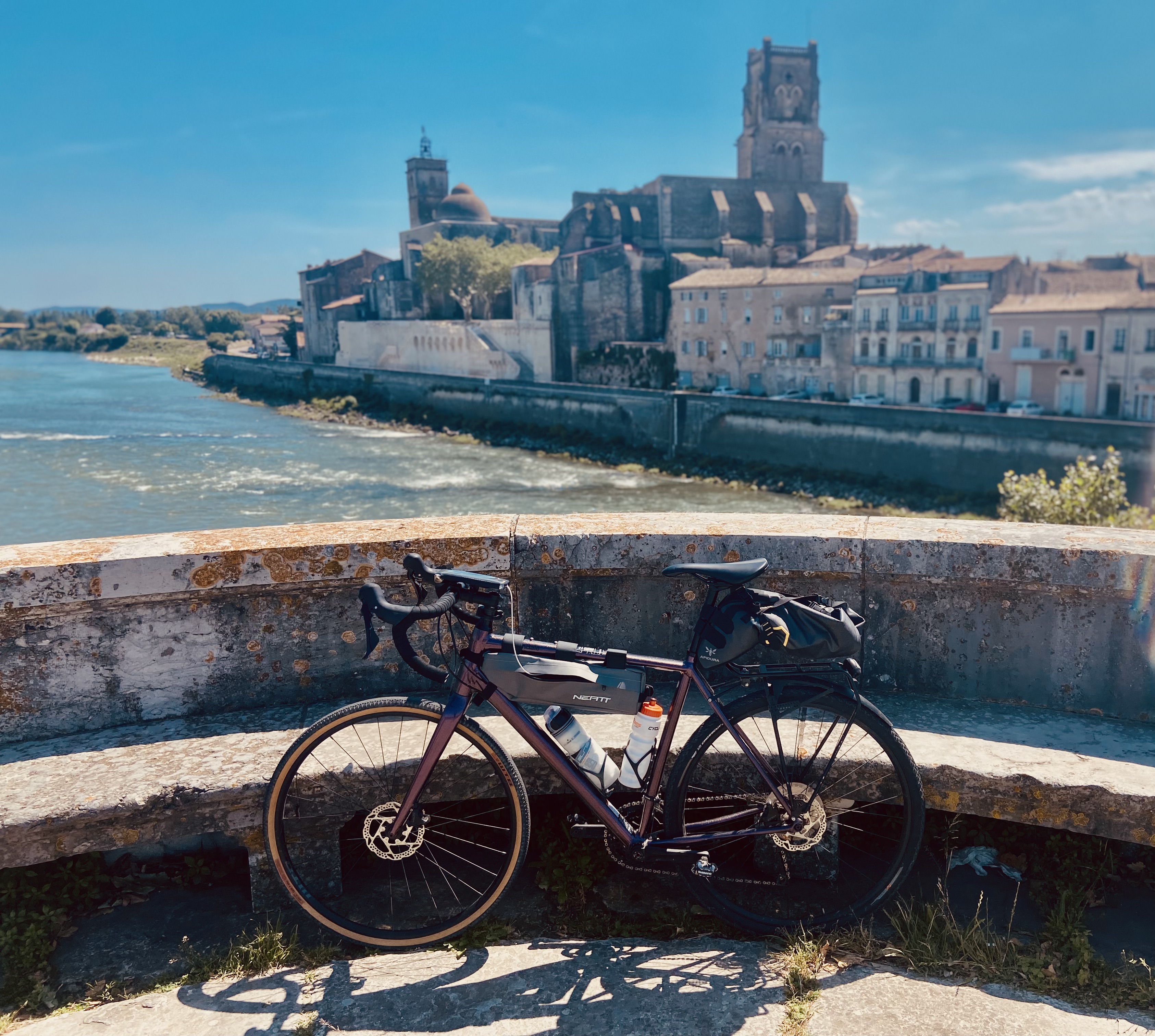 Entre vignes et vergers, entre Gard et Vaucluse, on sillonne ici des petits coins charmants de la vallée du Rhône. Aramon mérite bien une incursion sur ses quais et ses ruelles que domine un impressionnant château. Tout comme la vieille ville de Montfrin, par laquelle on passe avant de dévaler la voie verte qui mène aux quais de Beaucaire.